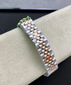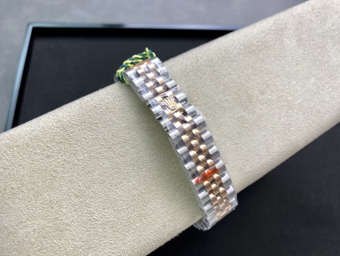 BRACELET:Two Tone 18K Rose Gold Plated Solid 904L Stainless Steel Jubilee Bracelet With Deployant Buckle