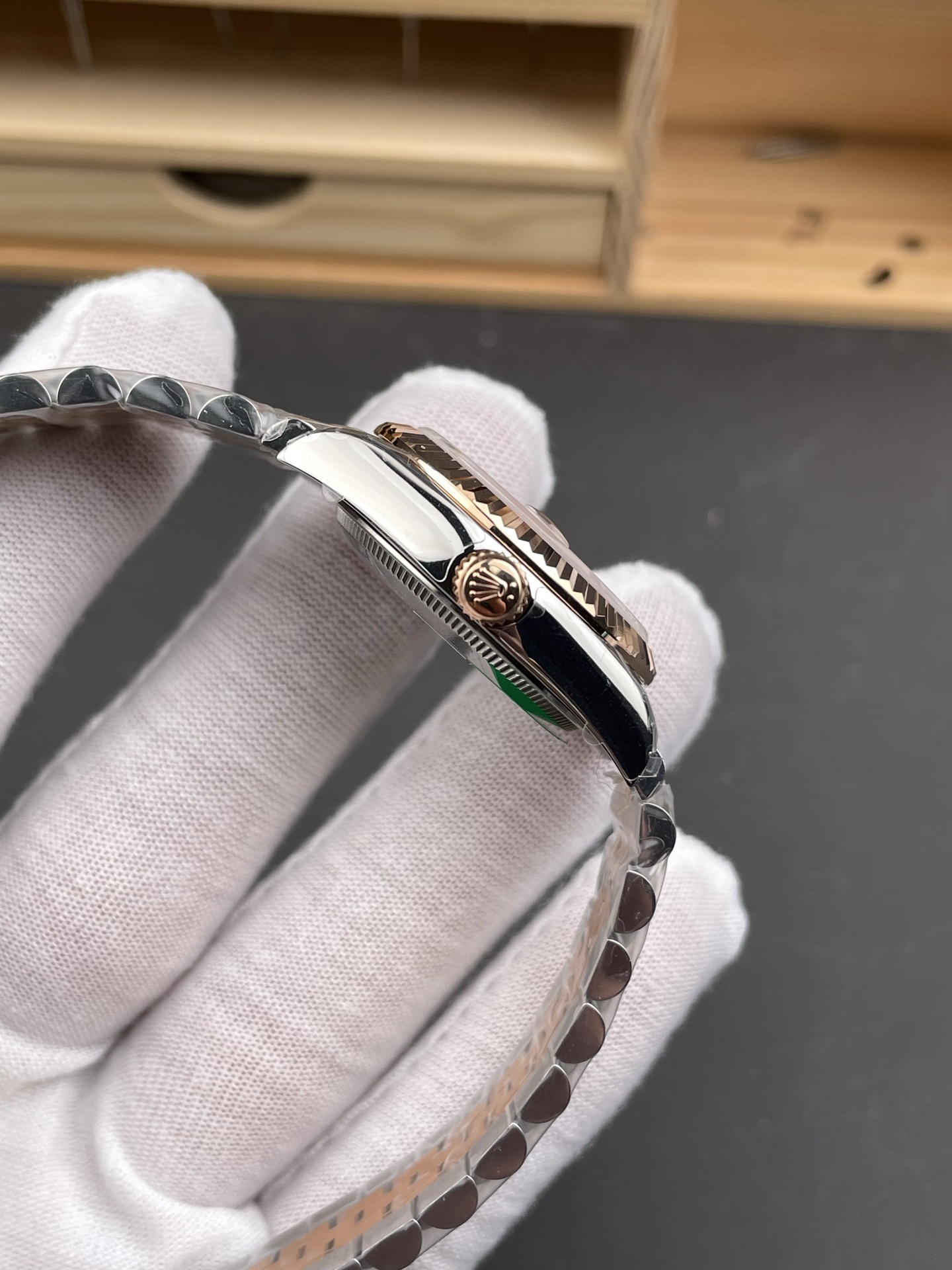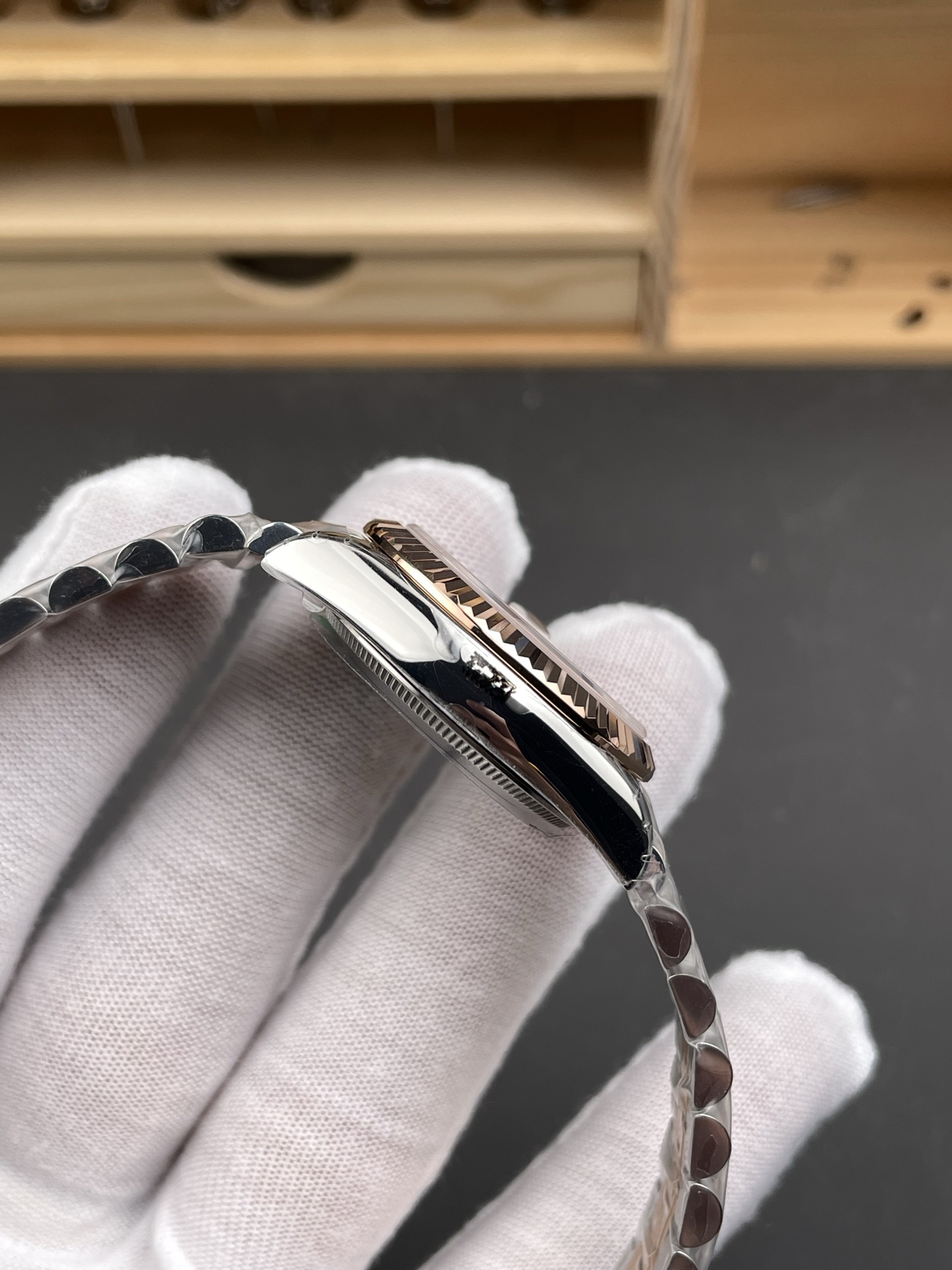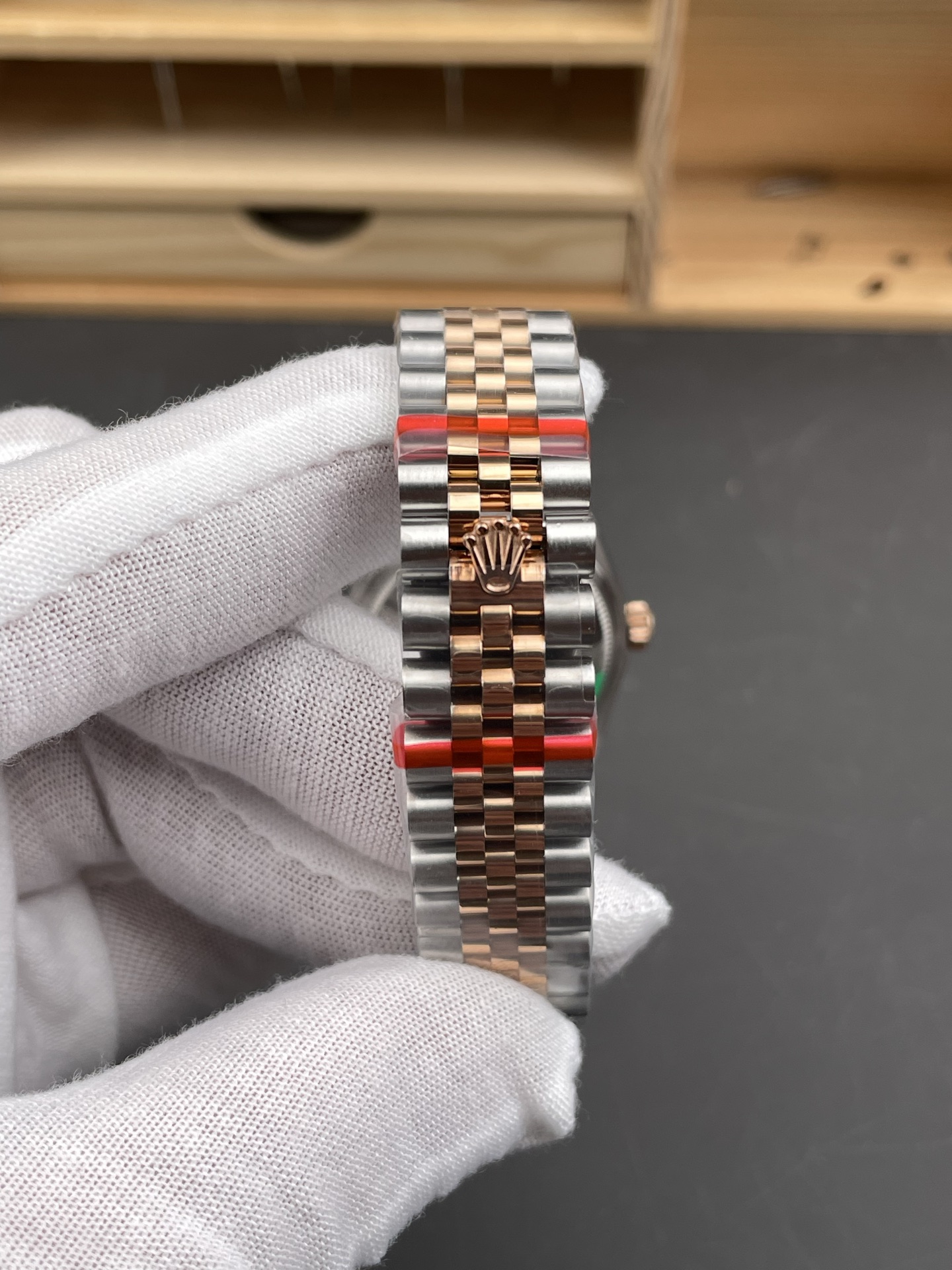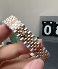 BRACELET:Two Tone 18K Yellow Rose Plated Solid 904L Stainless Steel Jubilee Bracelet With Deployant Buckle