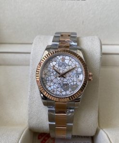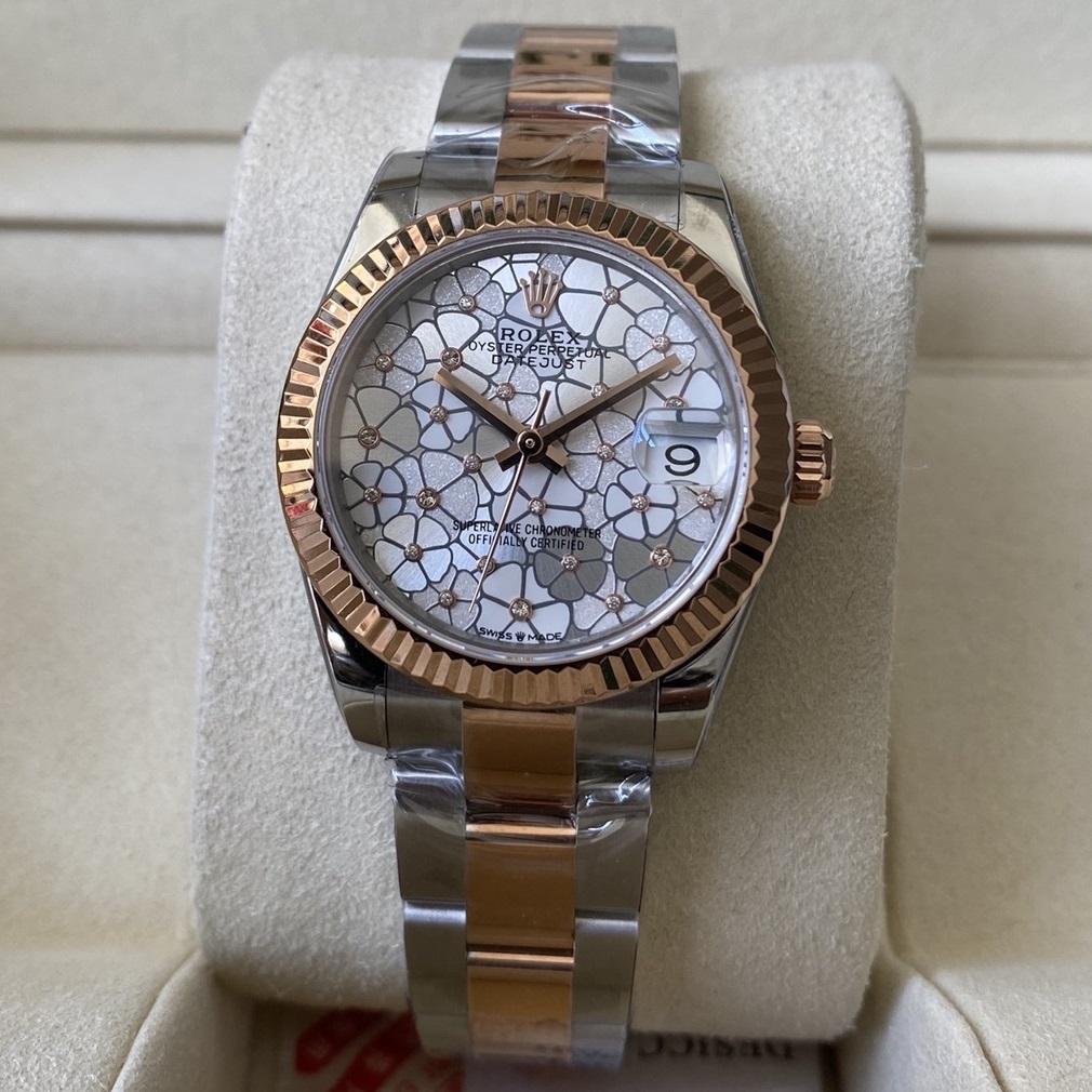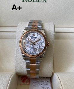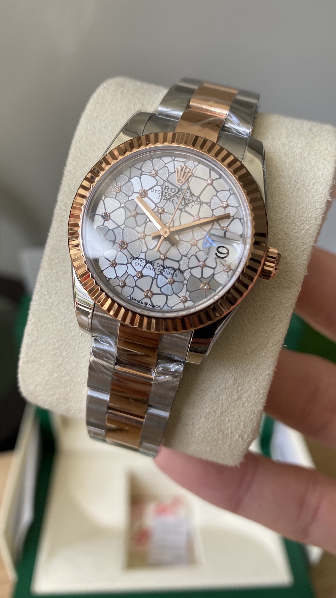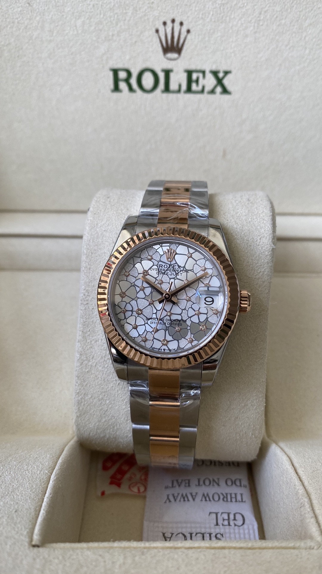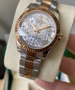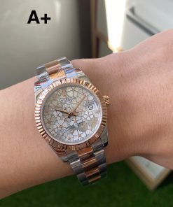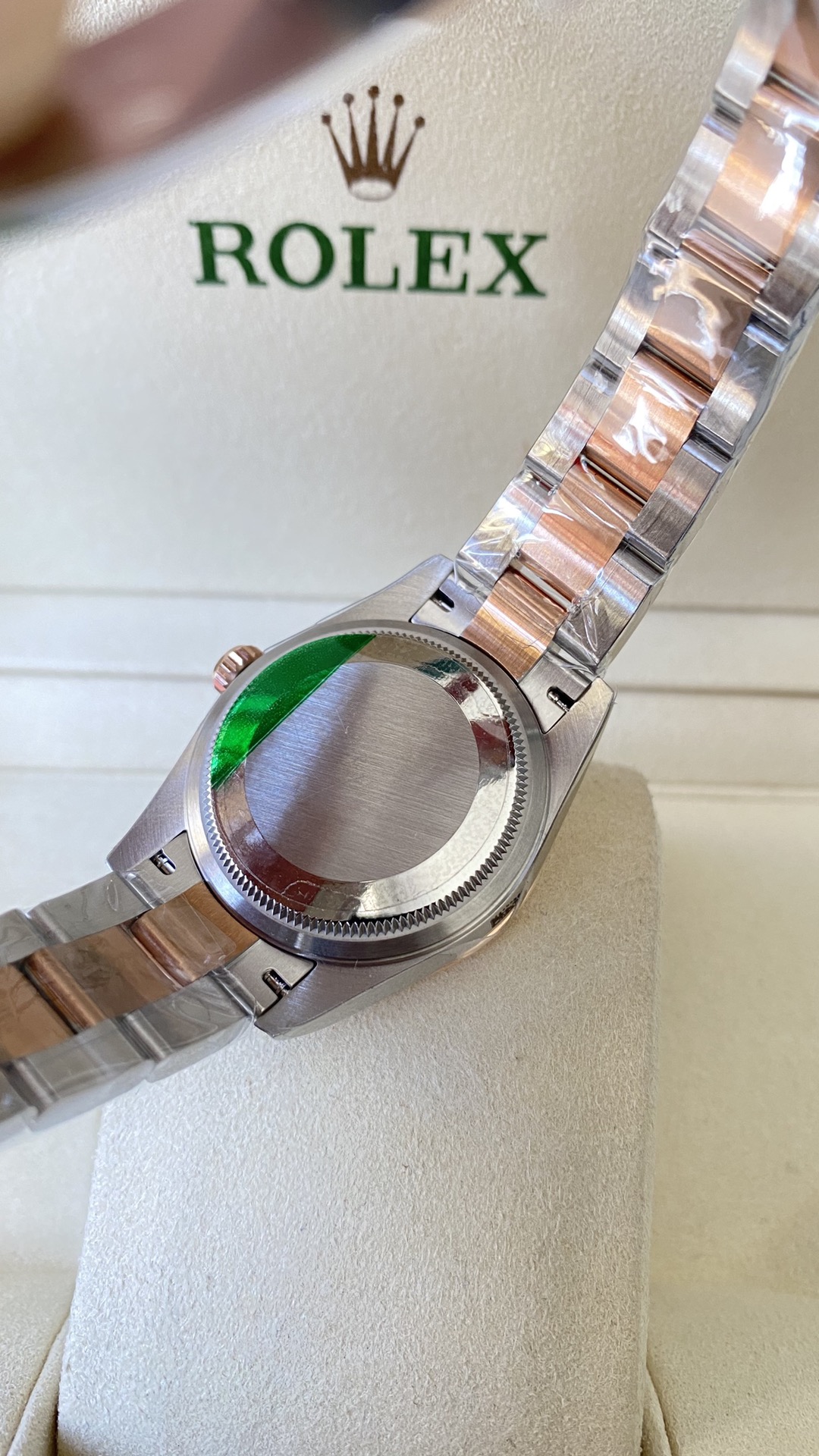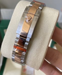 BRACELET:Two Tone 18K Rose Gold Plated Solid 904L Stainless Steel Oyster Bracelet With Deployant Buckle