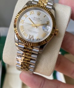 BRACELET:Two Tone 18K Yellow Gold Plated Solid 904L Stainless Steel Jubilee Bracelet With Deployant Buckle