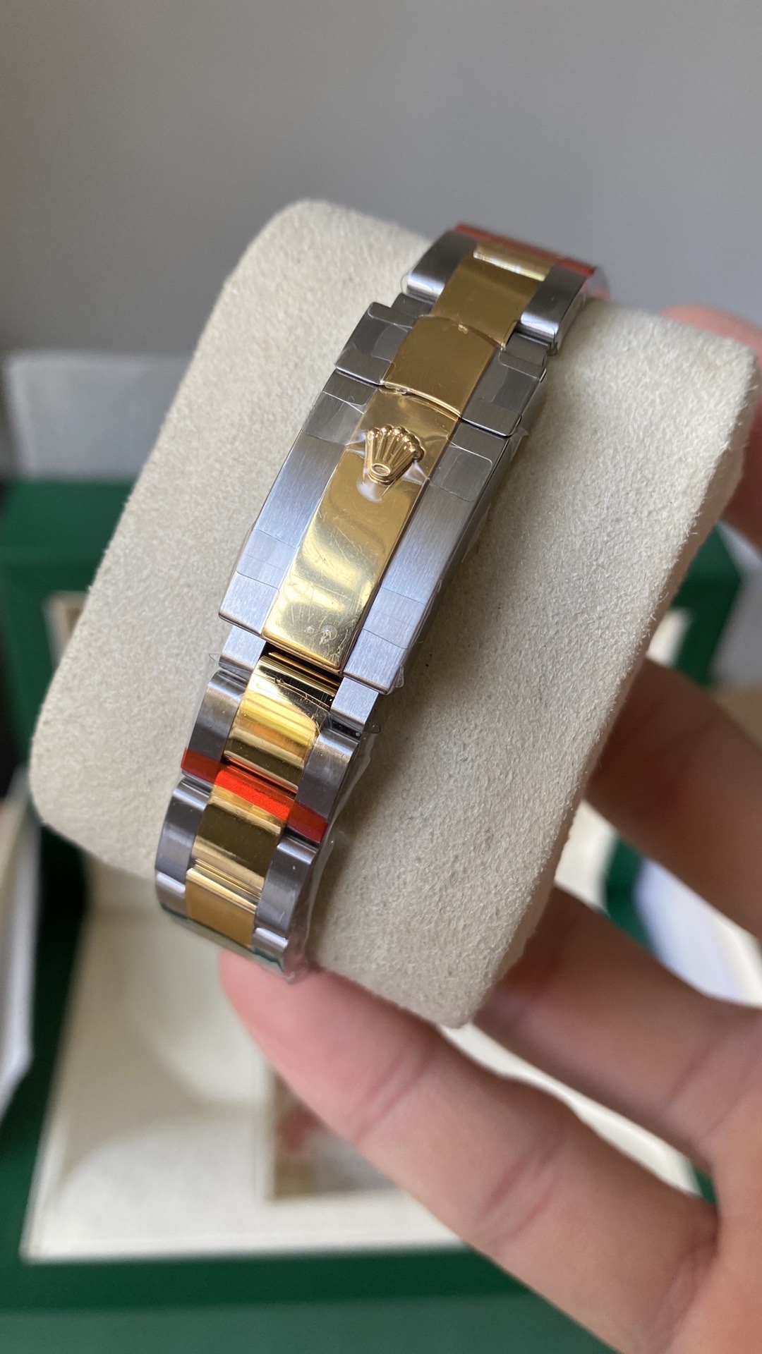 BRACELET:Two Tone 18K Yellow Gold Plated Solid 904L Stainless Steel Oyster Bracelet With Deployant Buckle