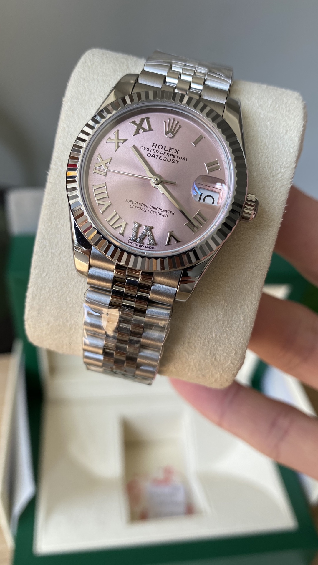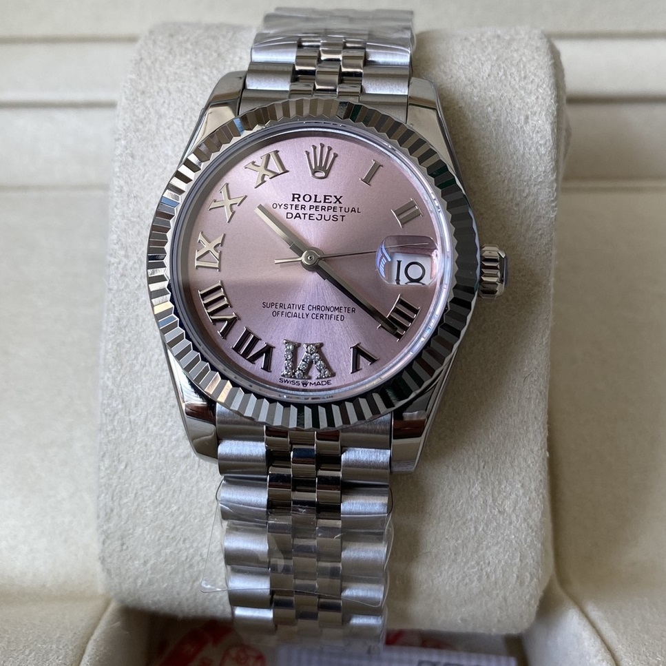 Rolex-Datejust 278274 Ladies 31mm Jubilee Stainless Steel/Steel Sundust Pink Dial Roman Markers A+F A2236 Automatic