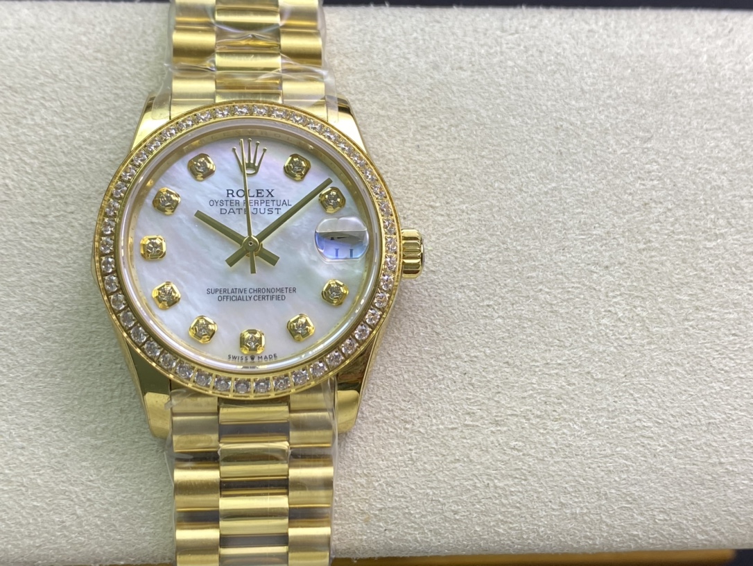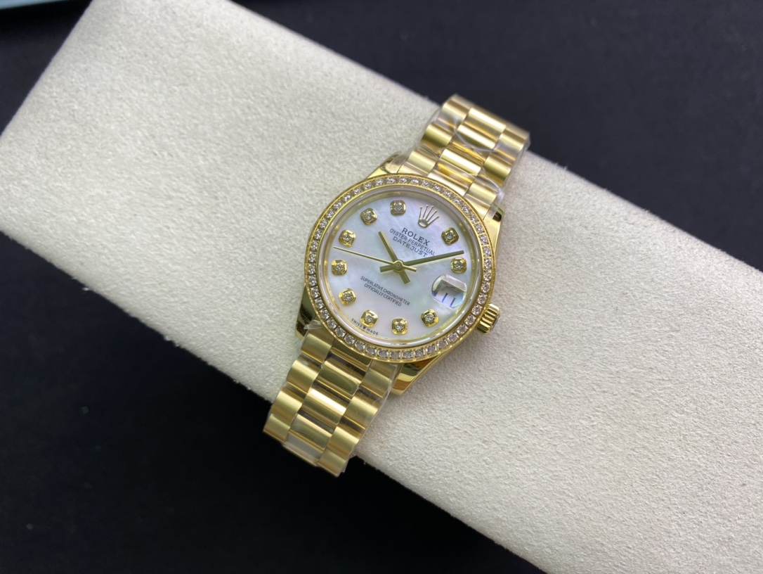 Rolex-Datejust 278288 Ladies 31mm Oyster Diamonds Yellow Gold Mother-Of-Pearl Dial Diamonds Markers WF A2236 Automatic