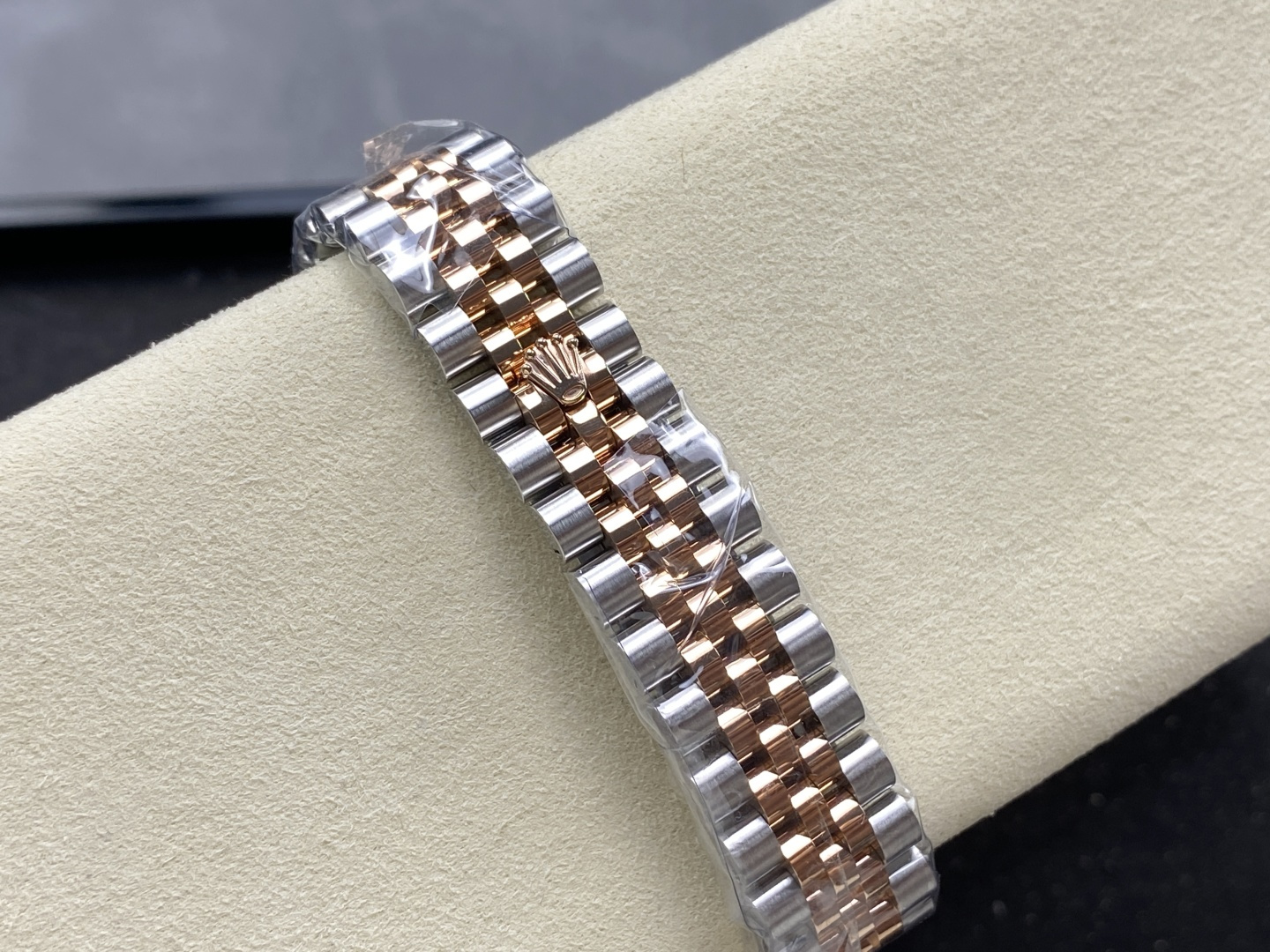 BRACELET:Tow Tone 18K Rose Gold Plated Solid 904L Stainless Steel Jubilee Bracelet With Deployant Buckle