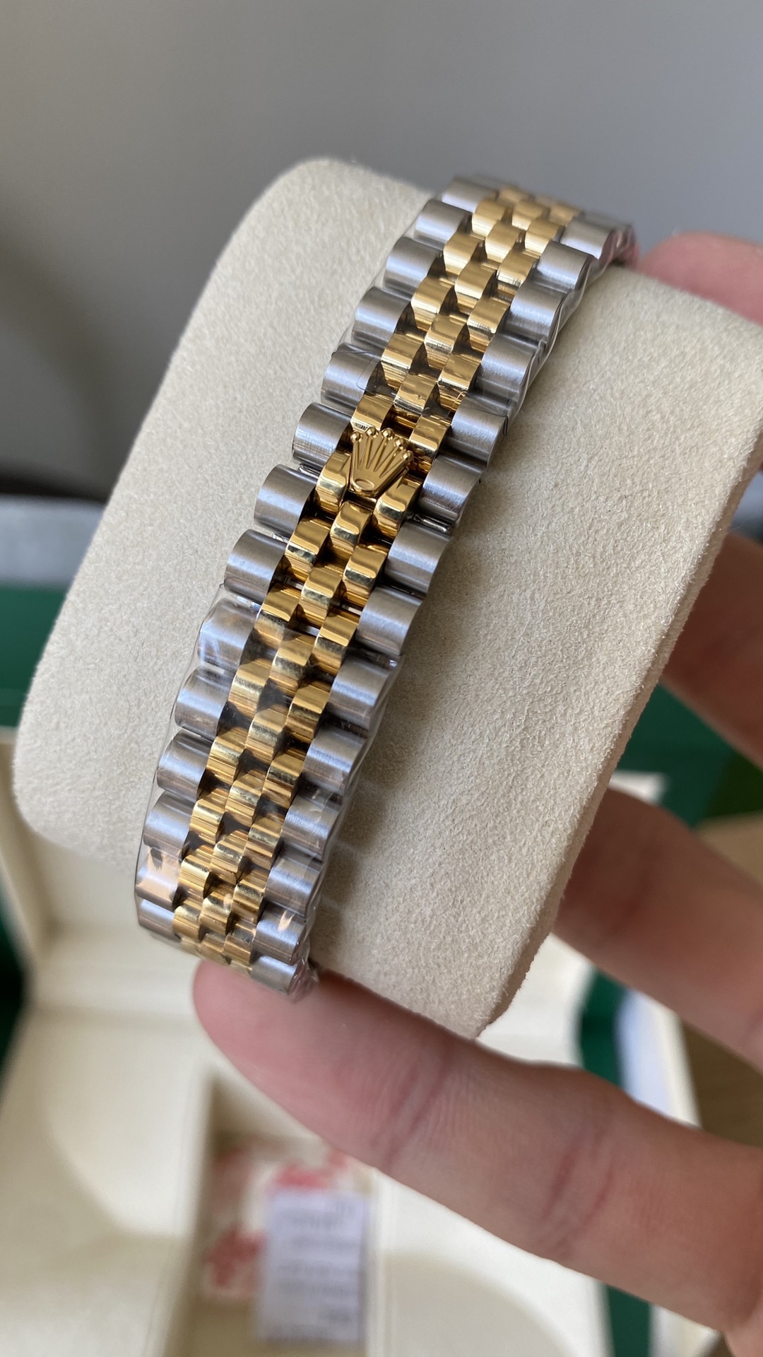 BRACELET:Two Tone 18K Yellow Gold Plated Solid 904L Stainless Steel Jubilee Bracelet With Deployant Buckle