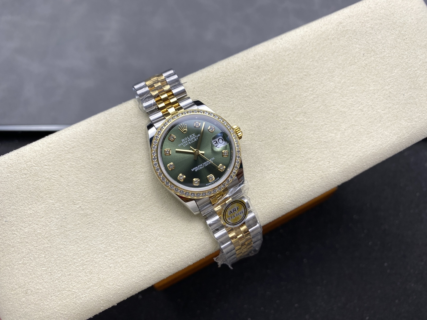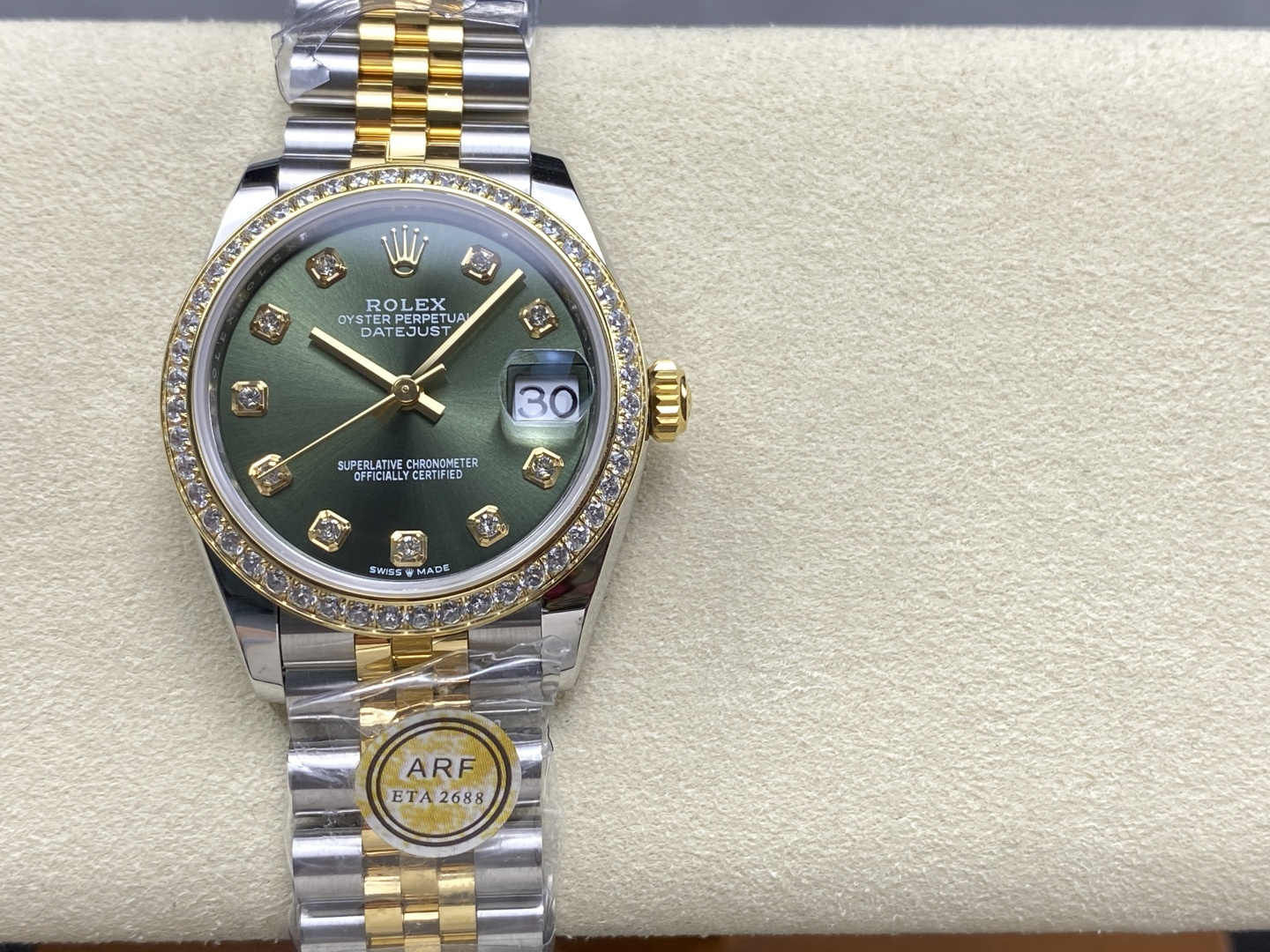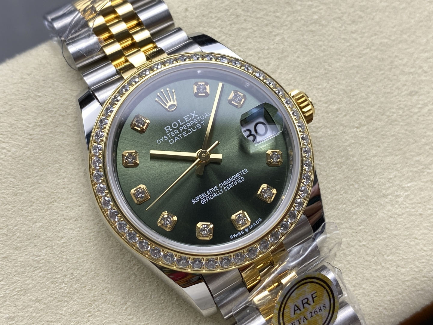 DIAL COLOR:Olive Green Dial With Diamonds Markers