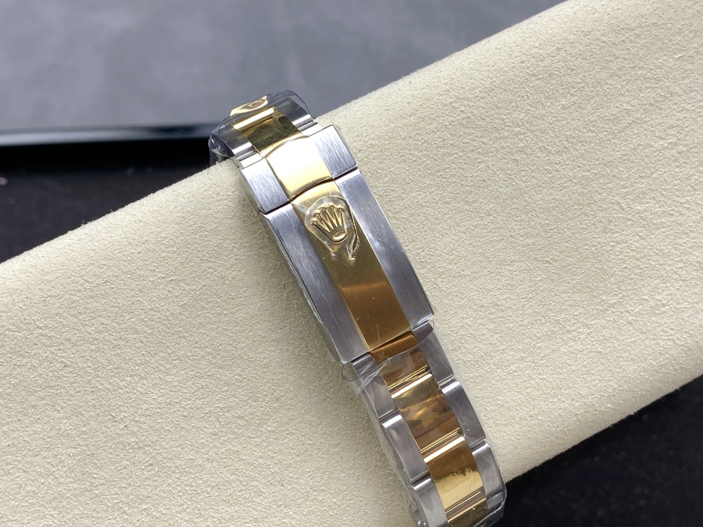 BRACELET:Tow Tone 18K Yellow Gold Plated Solid 904L Stainless Steel Oyster Bracelet With Deployant Buckle