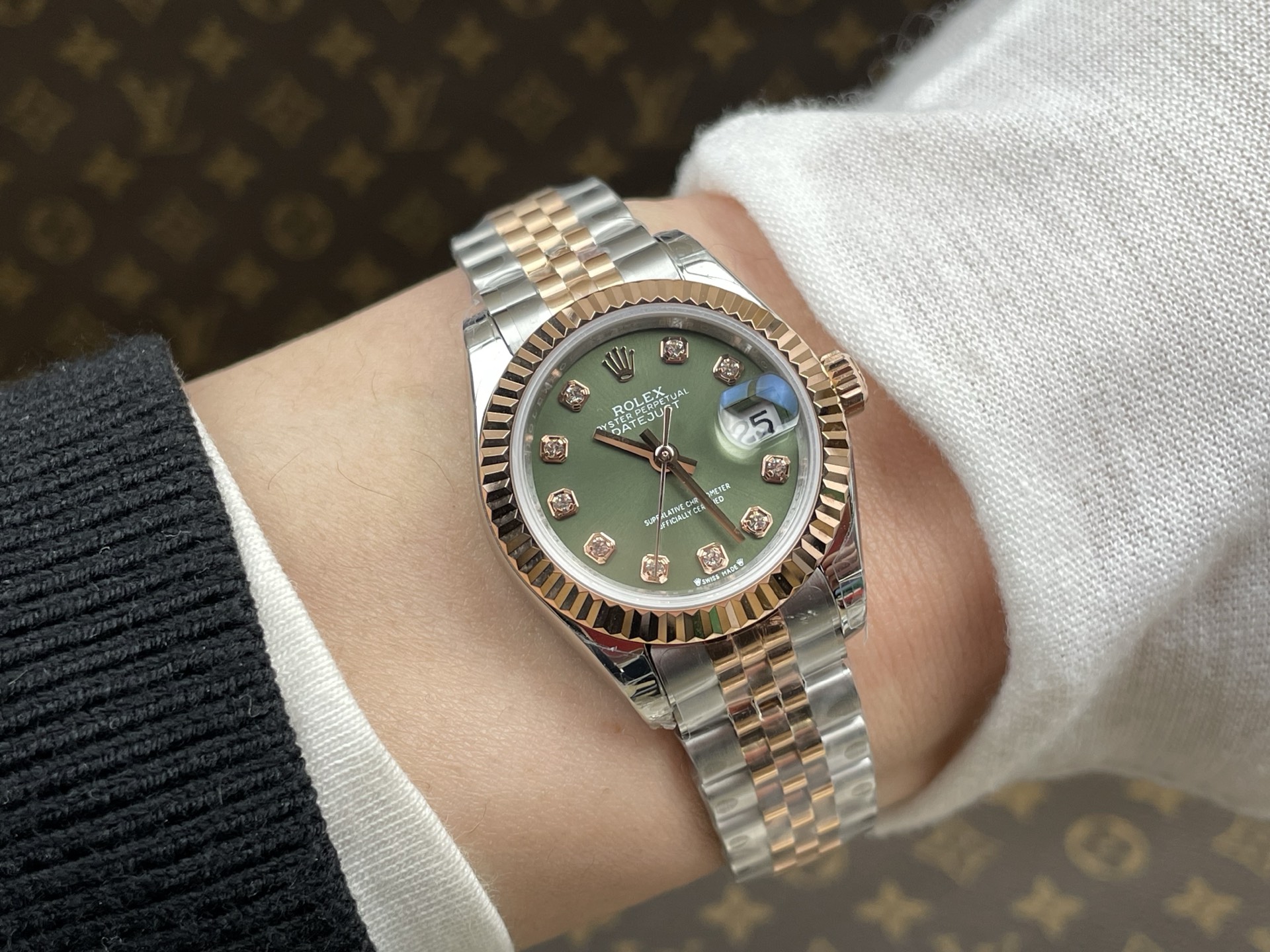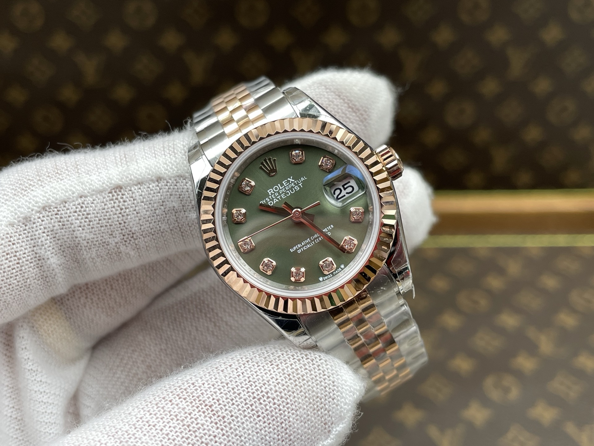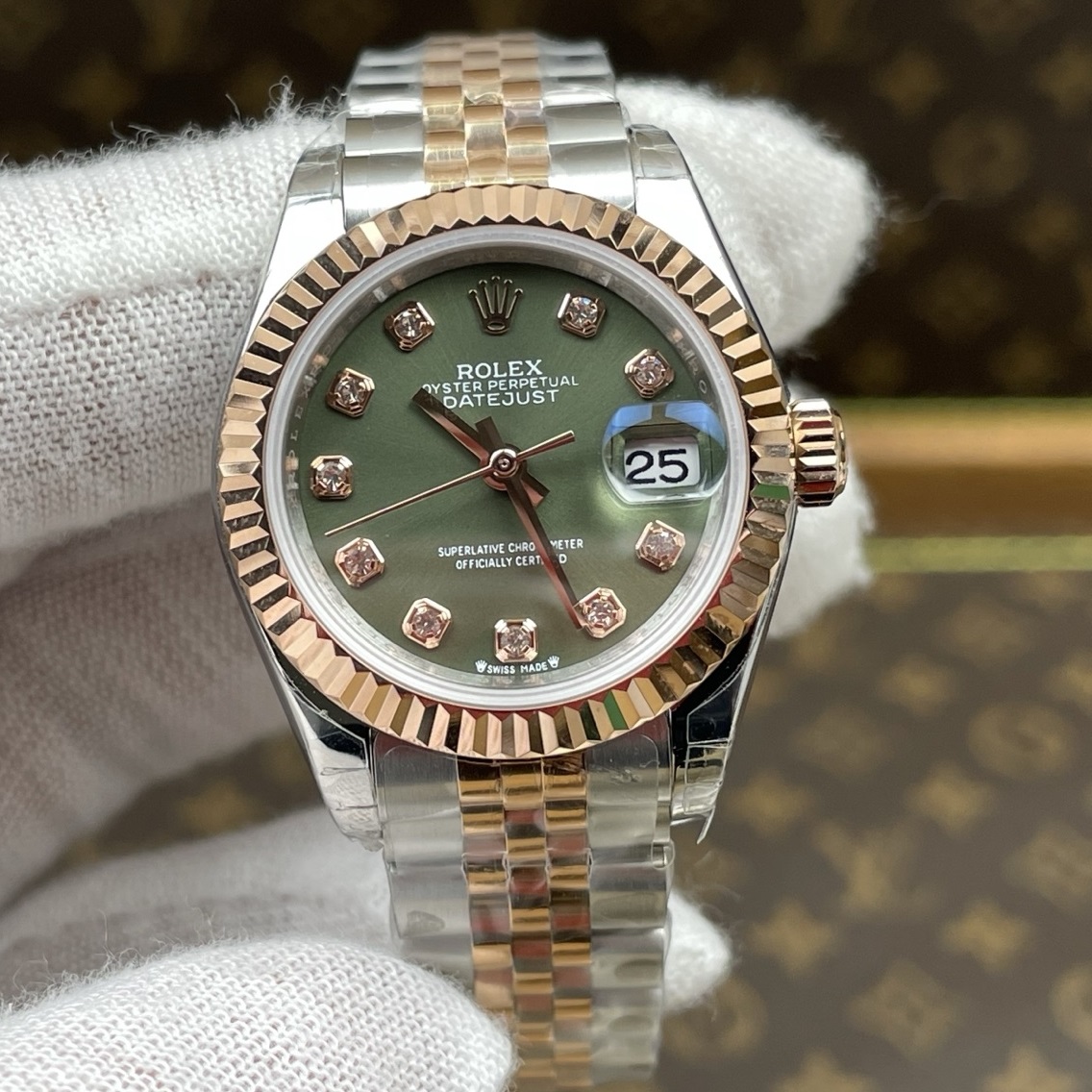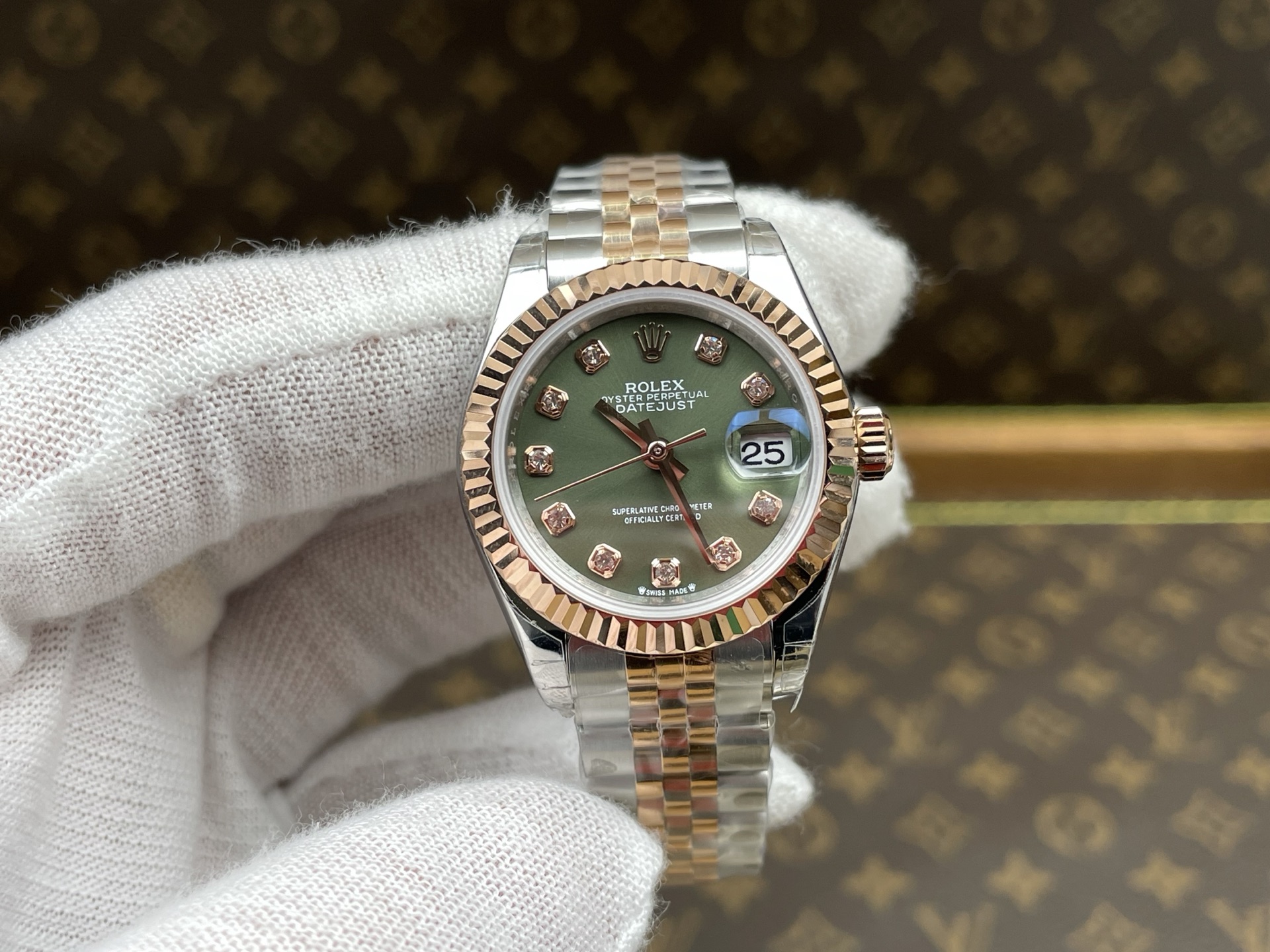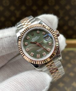 Rolex-Datejust 279171 Ladies 28mm Jubilee Stainless Steel/Rose Gold Olive Green Dial Diamonds Markers GSF A2236 Automatic