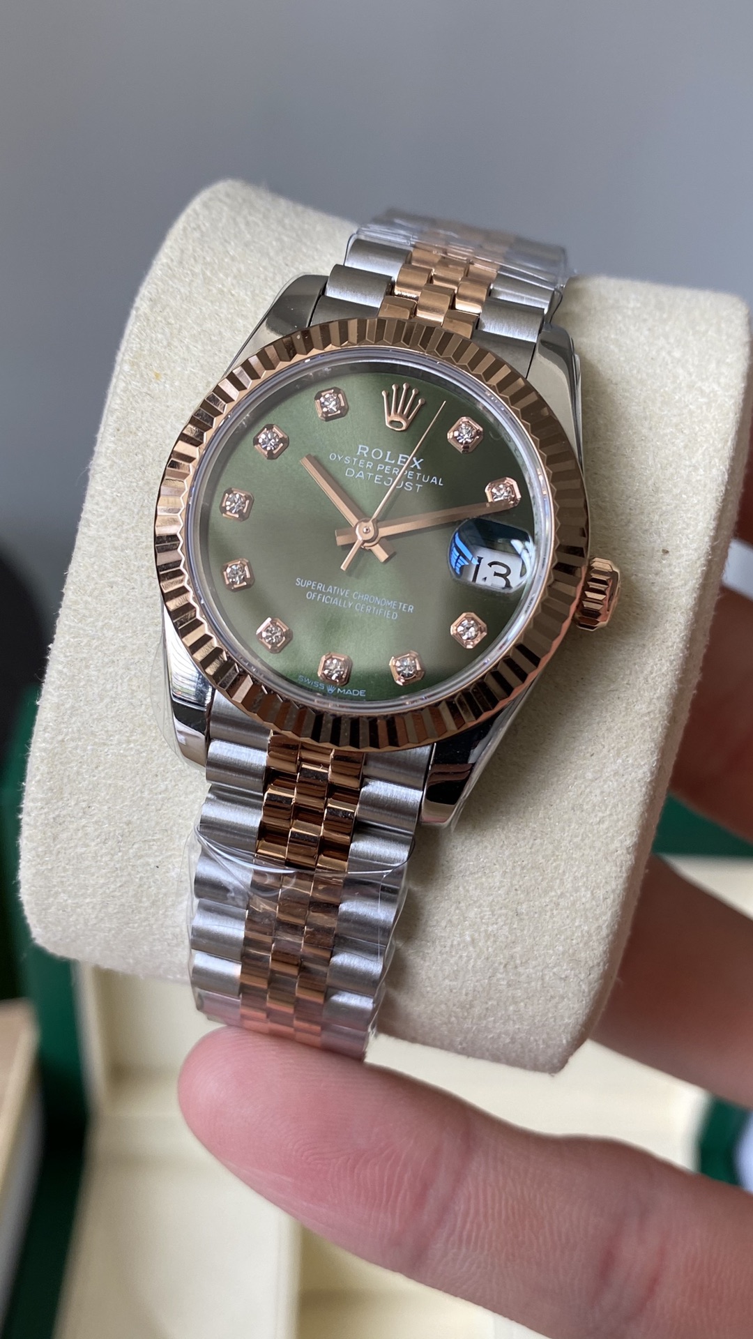 Rolex-Datejust 279171 Ladies 31mm Jubilee Stainlesss Steel/Rose Gold Mint Green Dial Diamonds Markers A+F A2236 Automatic