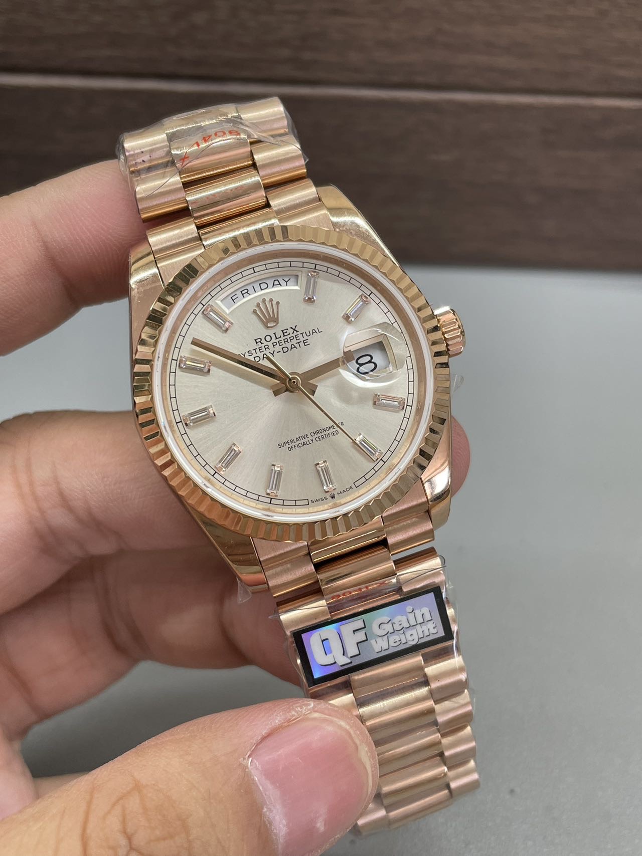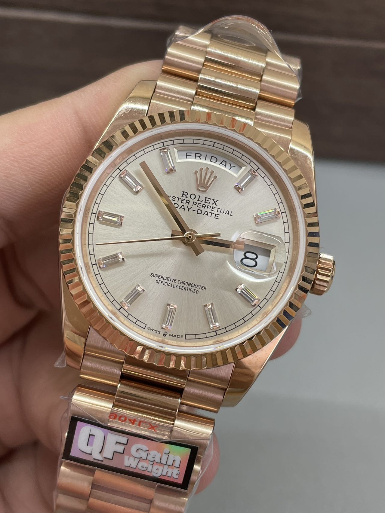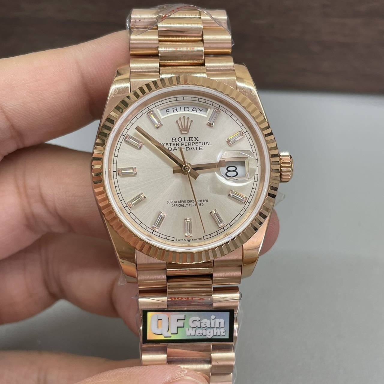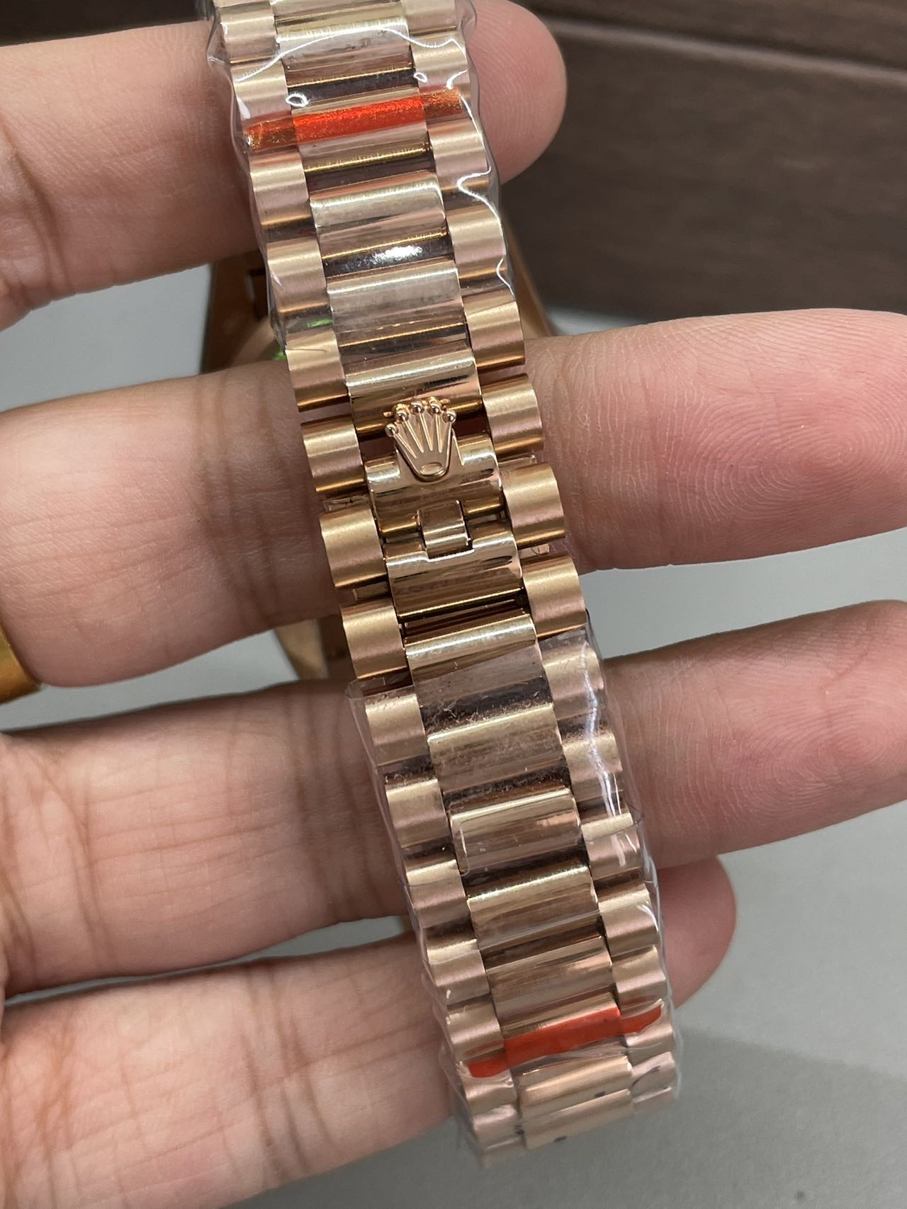 BRACELET: 18K Rose Gold Plated On Solid 904L Stainless Steel President Bracelet with Double SEL(Cu-W Metal Increase Watch Weight )