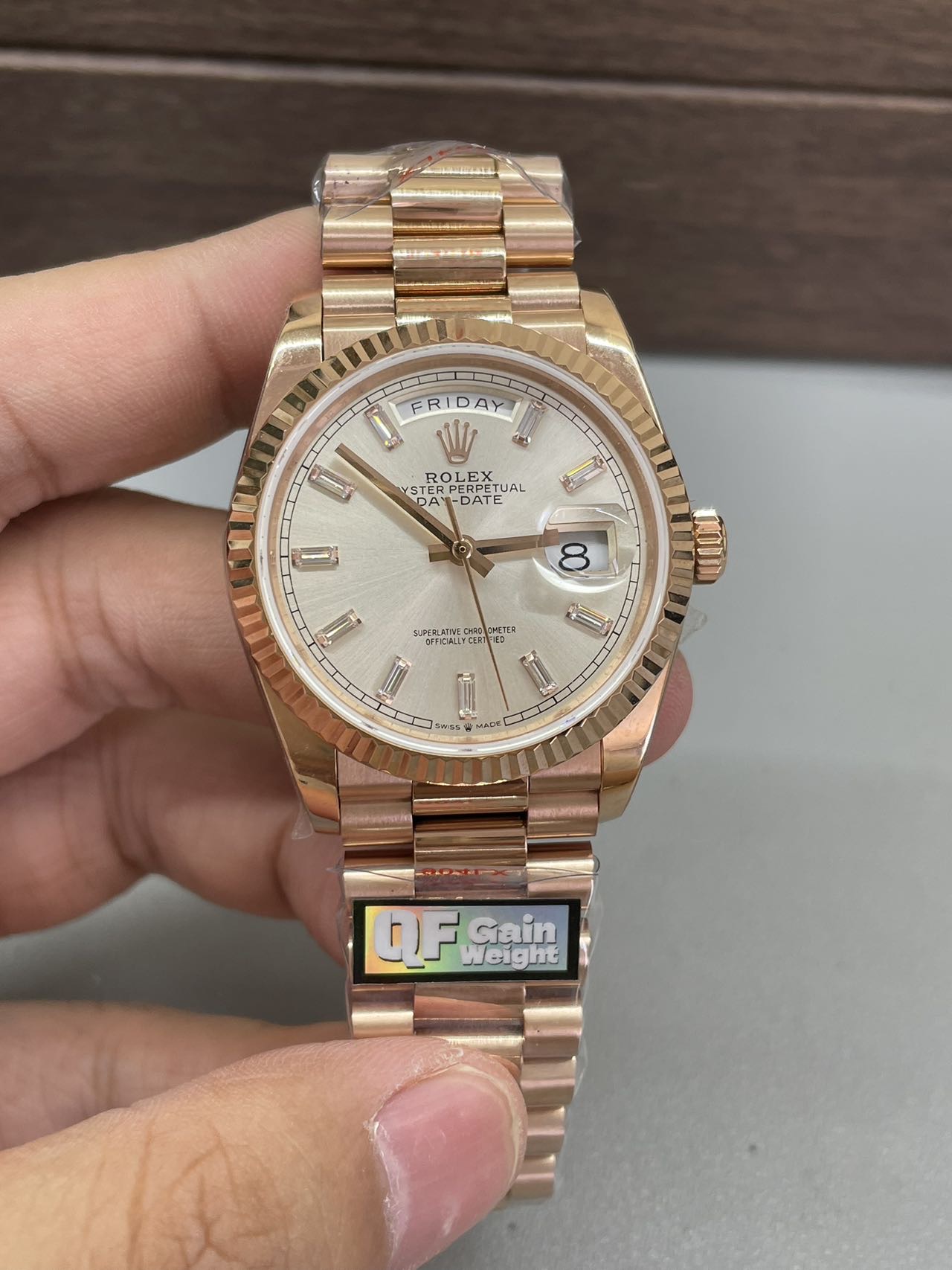 DIAL COLOR: Champagne Rose Gold Dial Baguette Diamonds Markers