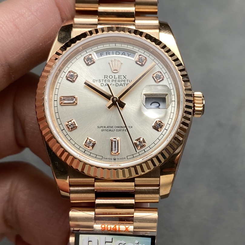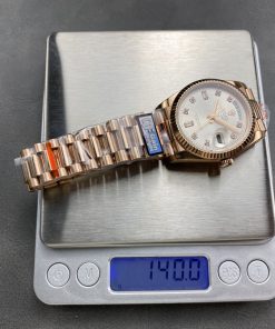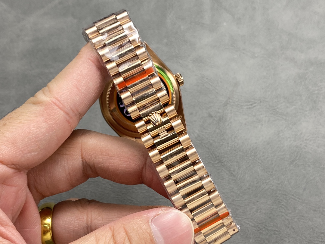 BRACELET: 18K Rose Gold Plated On Solid 904L Stainless Steel President Bracelet with Double SEL(Cu-W Metal Increase Watch Weight )