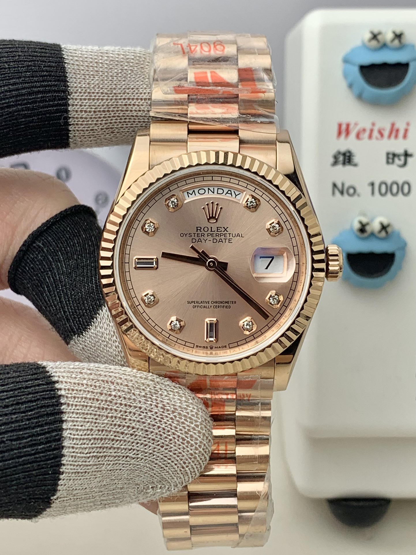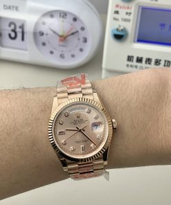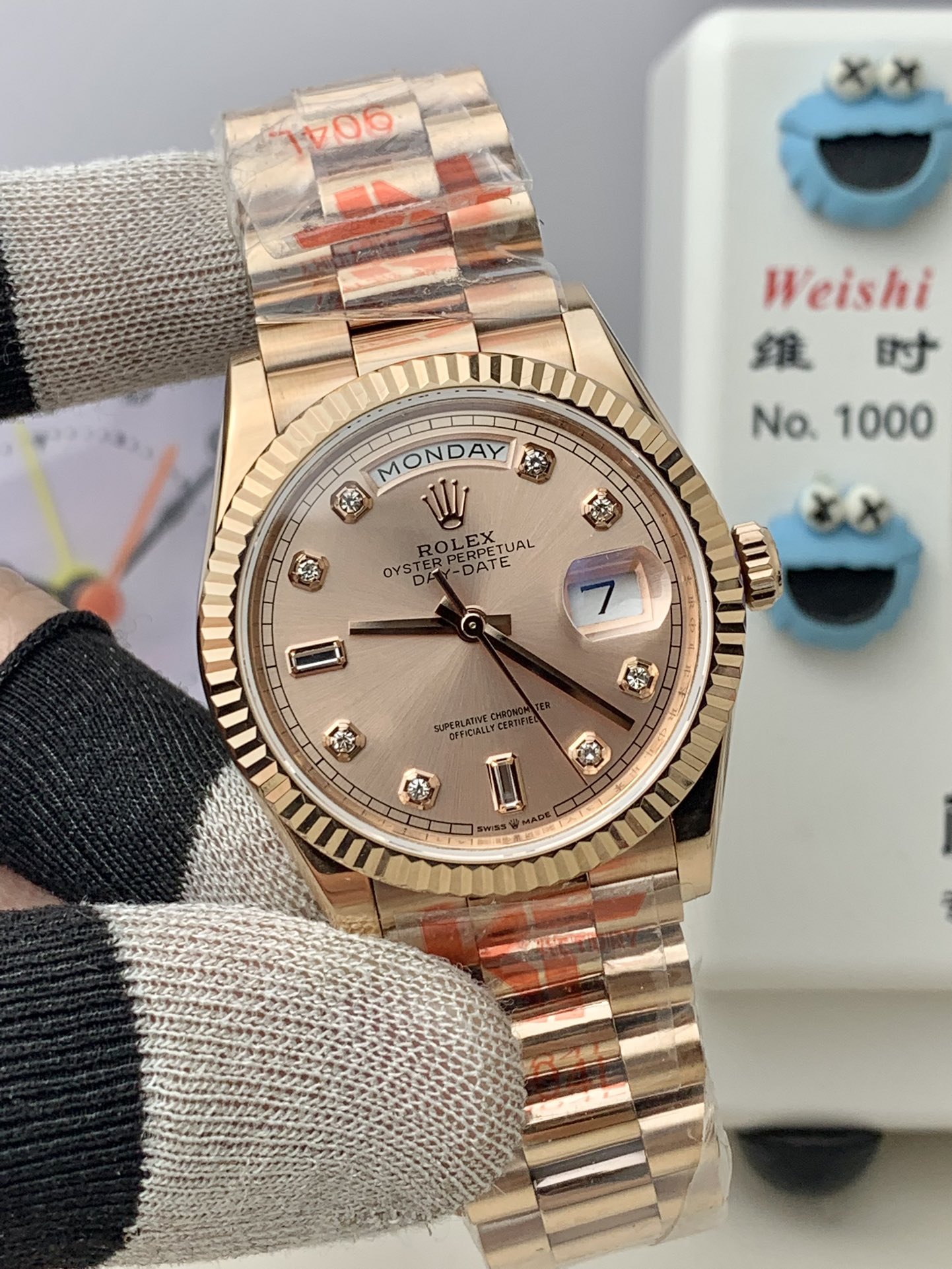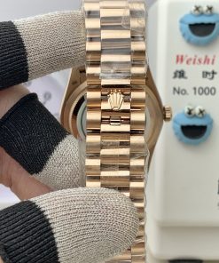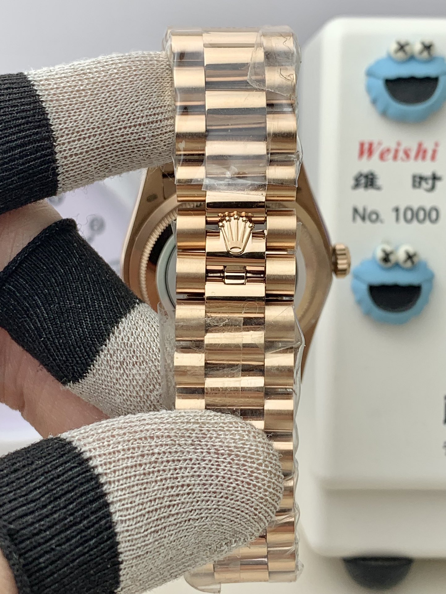 BRACELET: 18K Rose Gold Plated On Solid 904L Stainless Steel President Bracelet with Double SEL(Cu-W Metal Increase Watch Weight )
