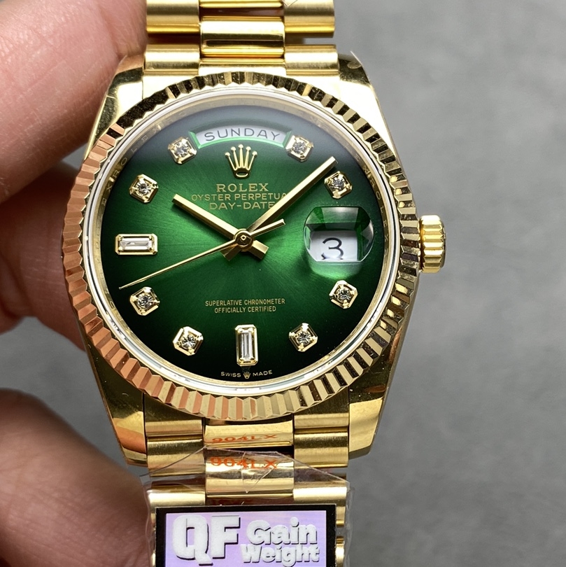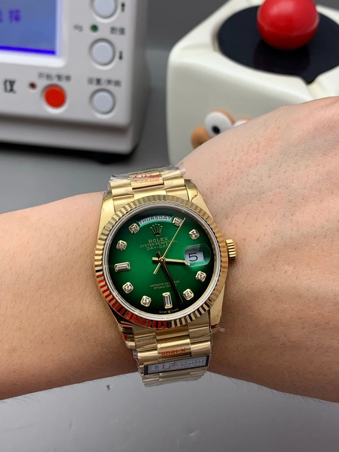 DIAL COLOR: Green Ombre Dial Diamonds Markers