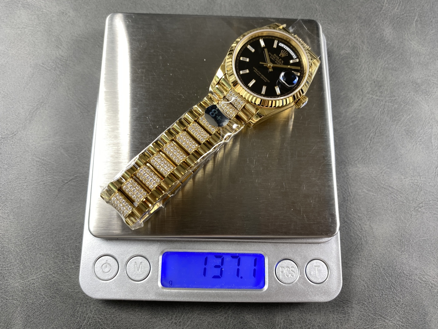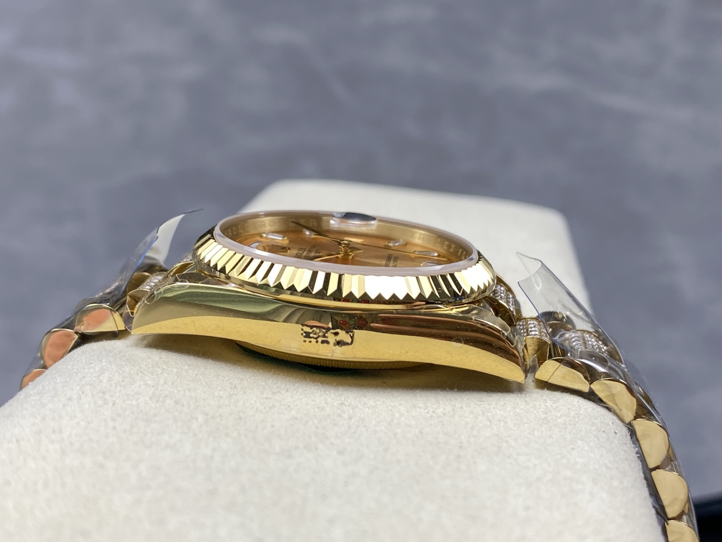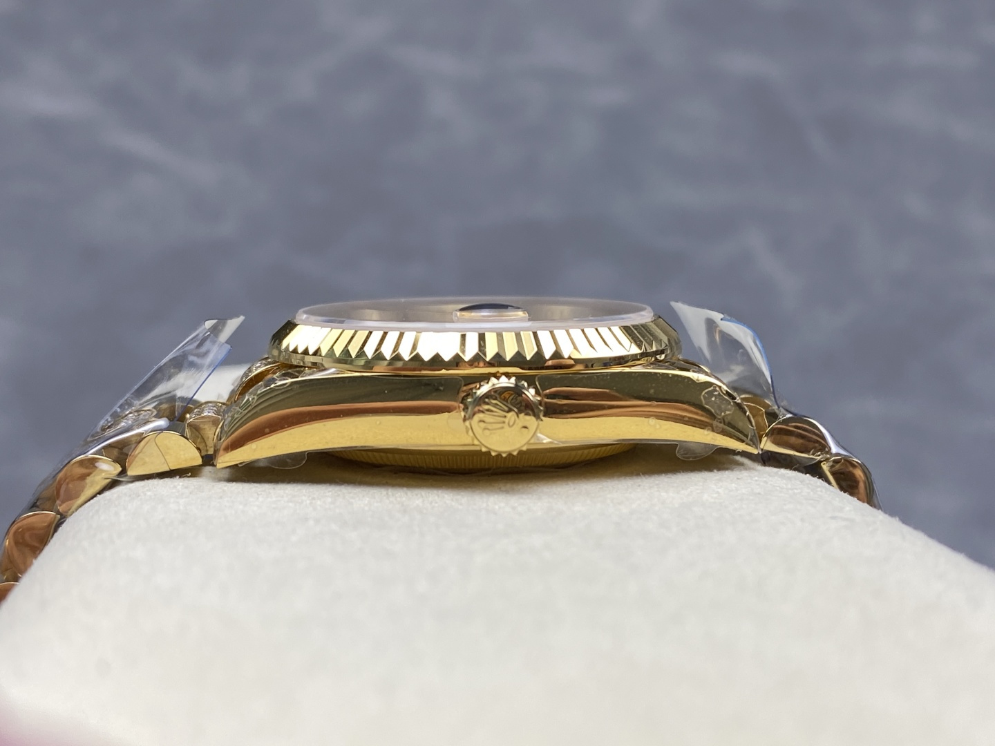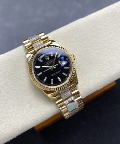 Rolex-DayDate 128238 36mm President Yellow Gold/Yellow Gold Black Dial Baguette Markers 8+F VR3255 Automatic