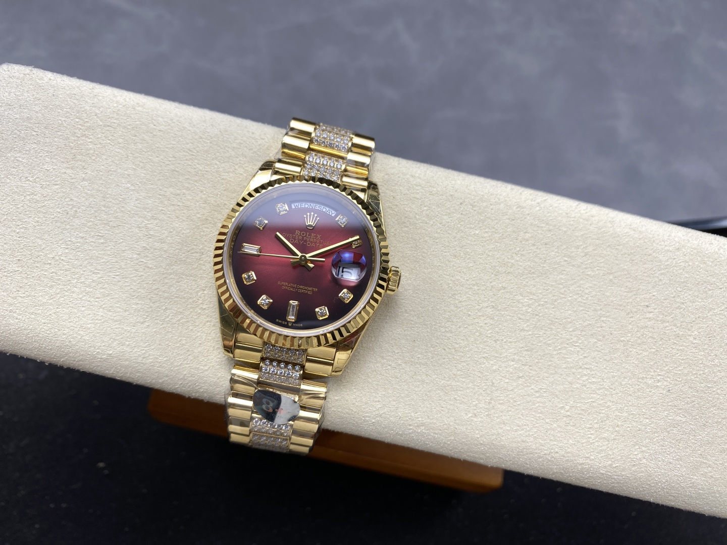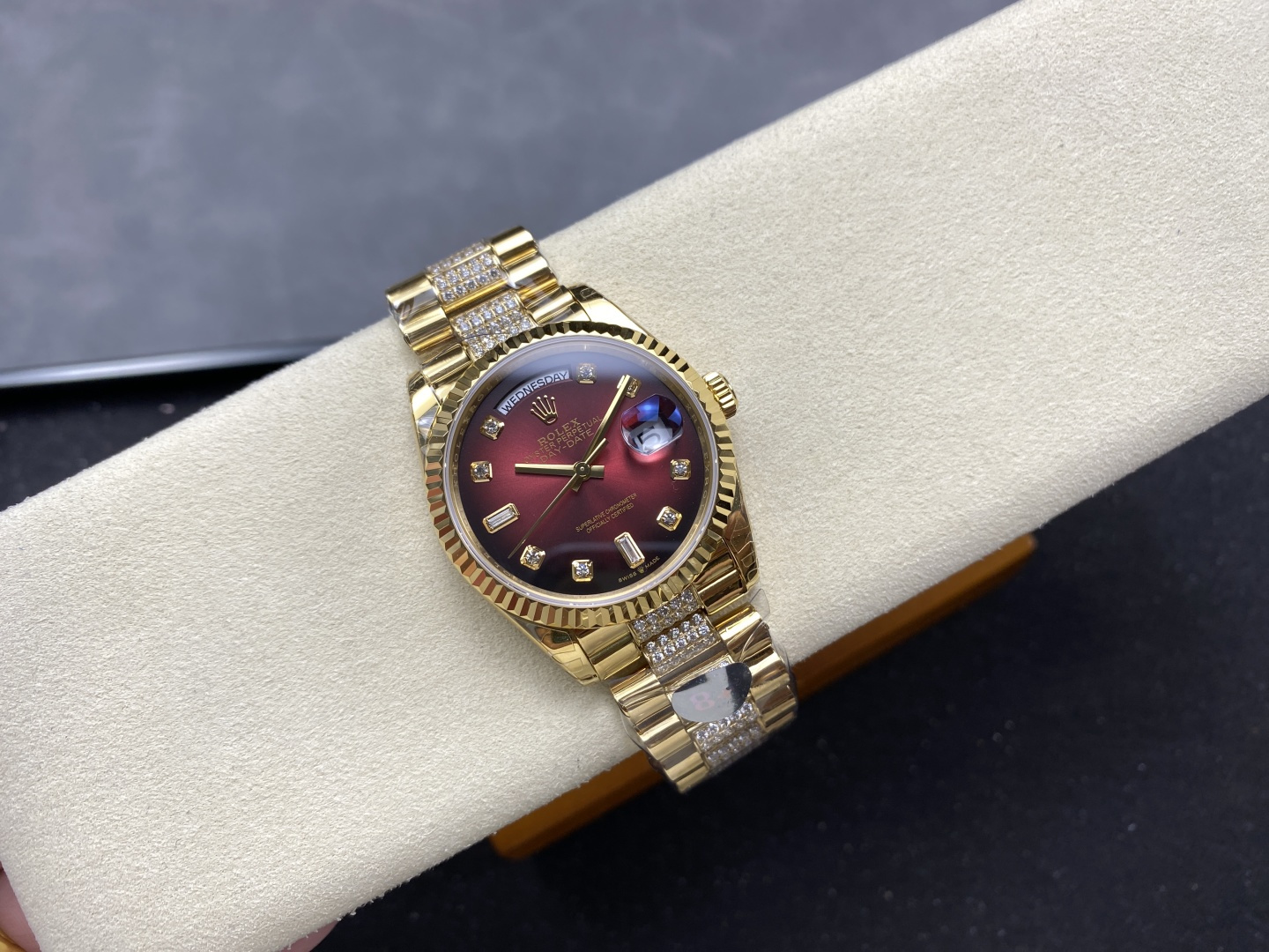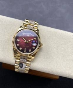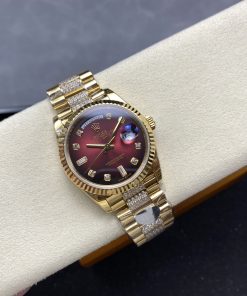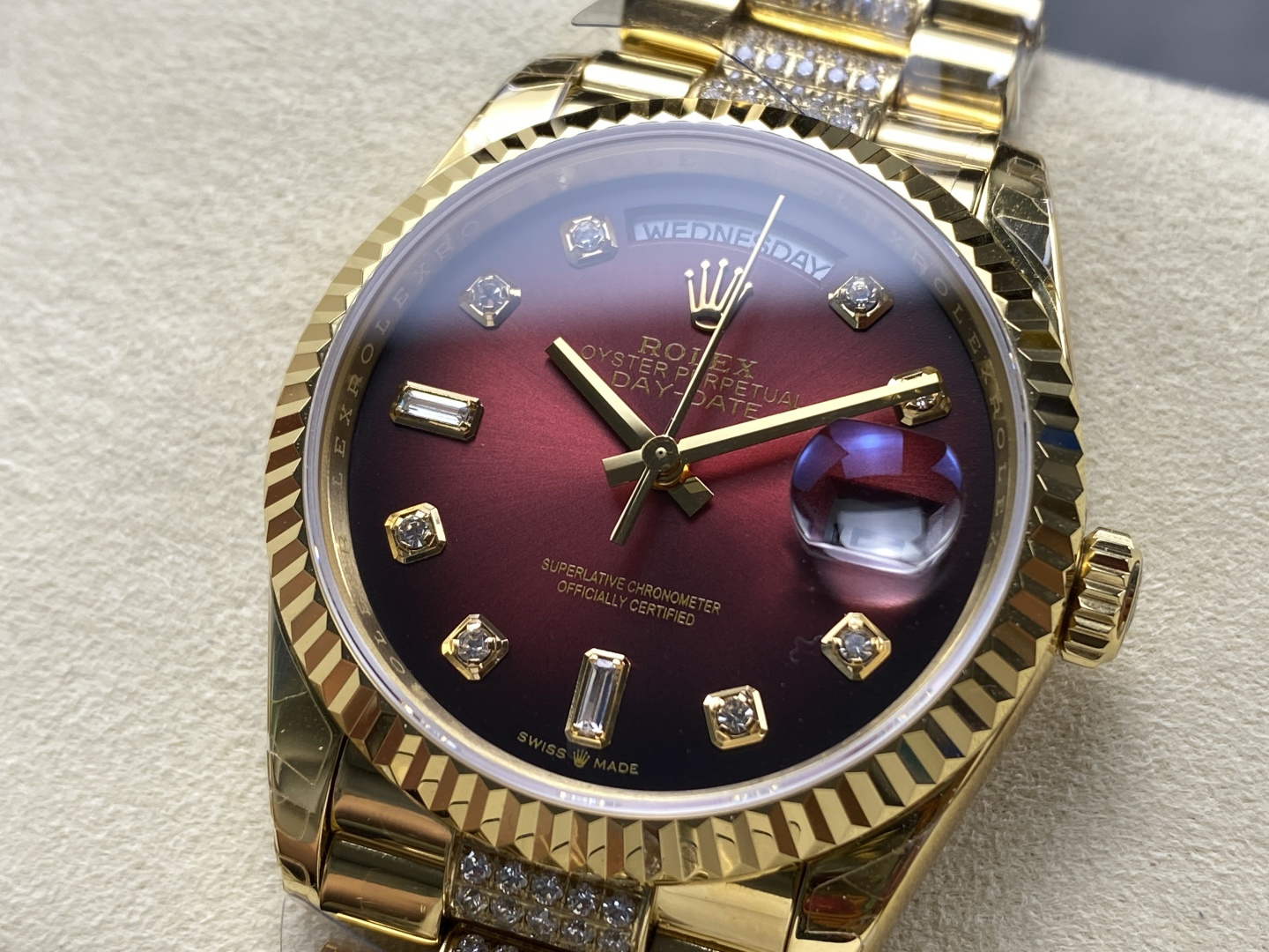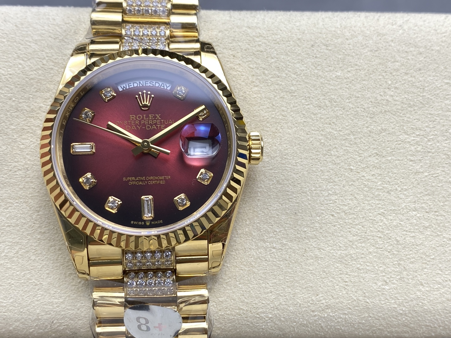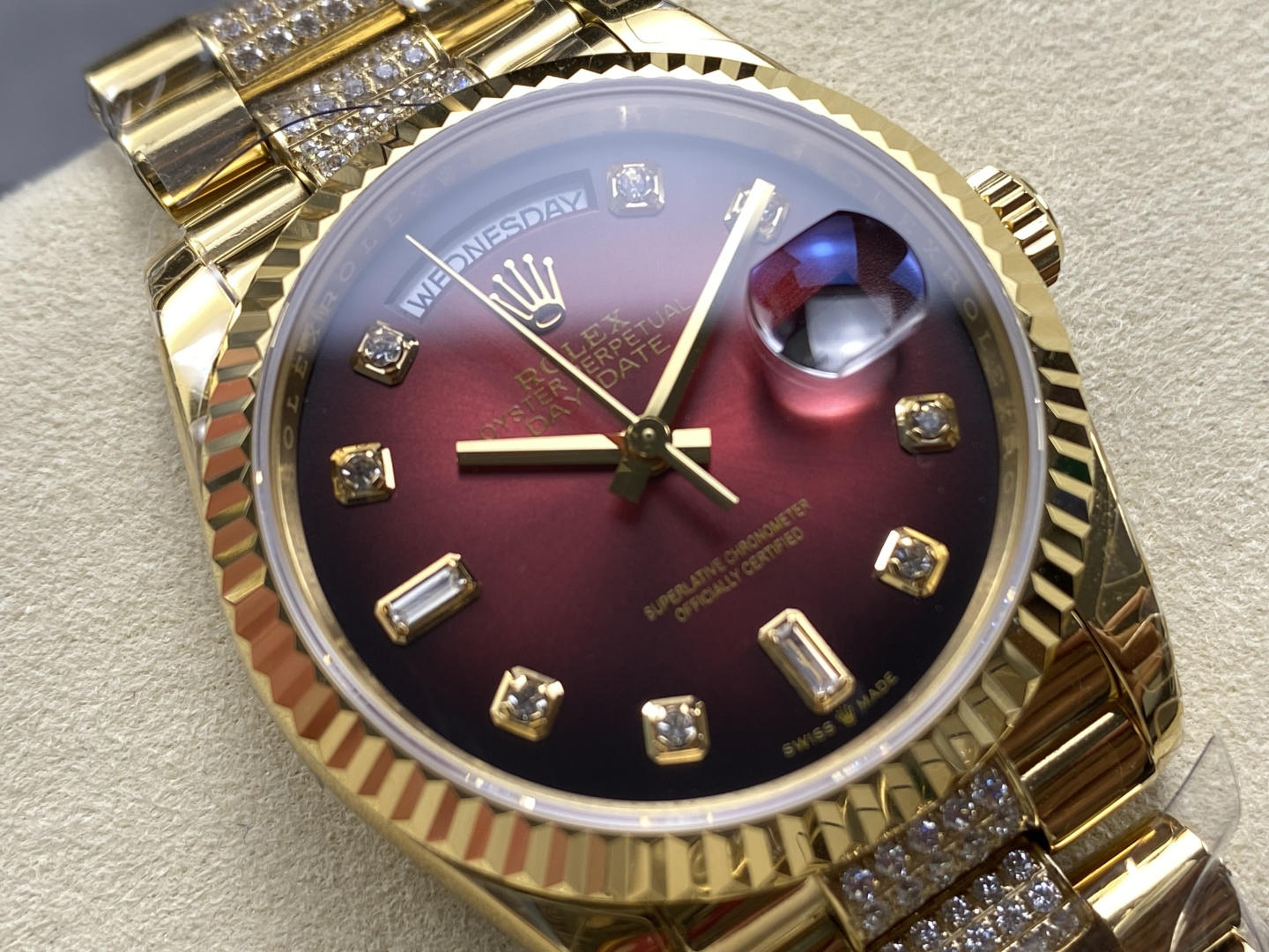 CASE MATERIAL: 18K Yellow Gold Platd On Solid 904L Stainless Steel With Diamonds In Middle Links
