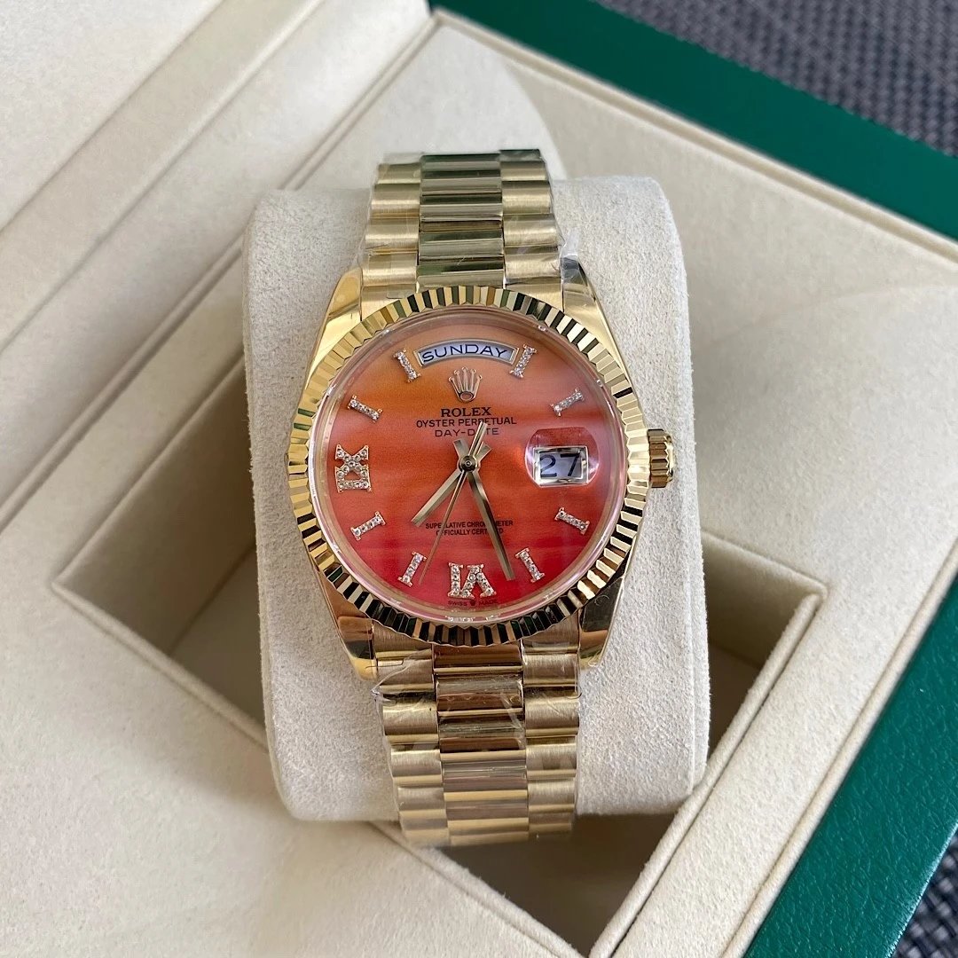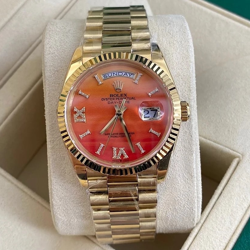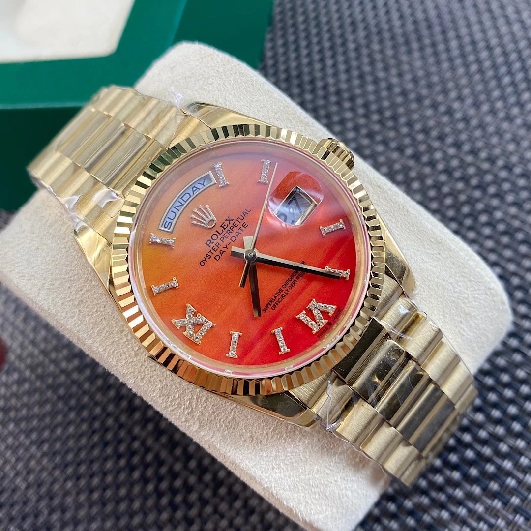 DIAL COLOR: Orange Carnelian Dial Diamonds Roman Markers