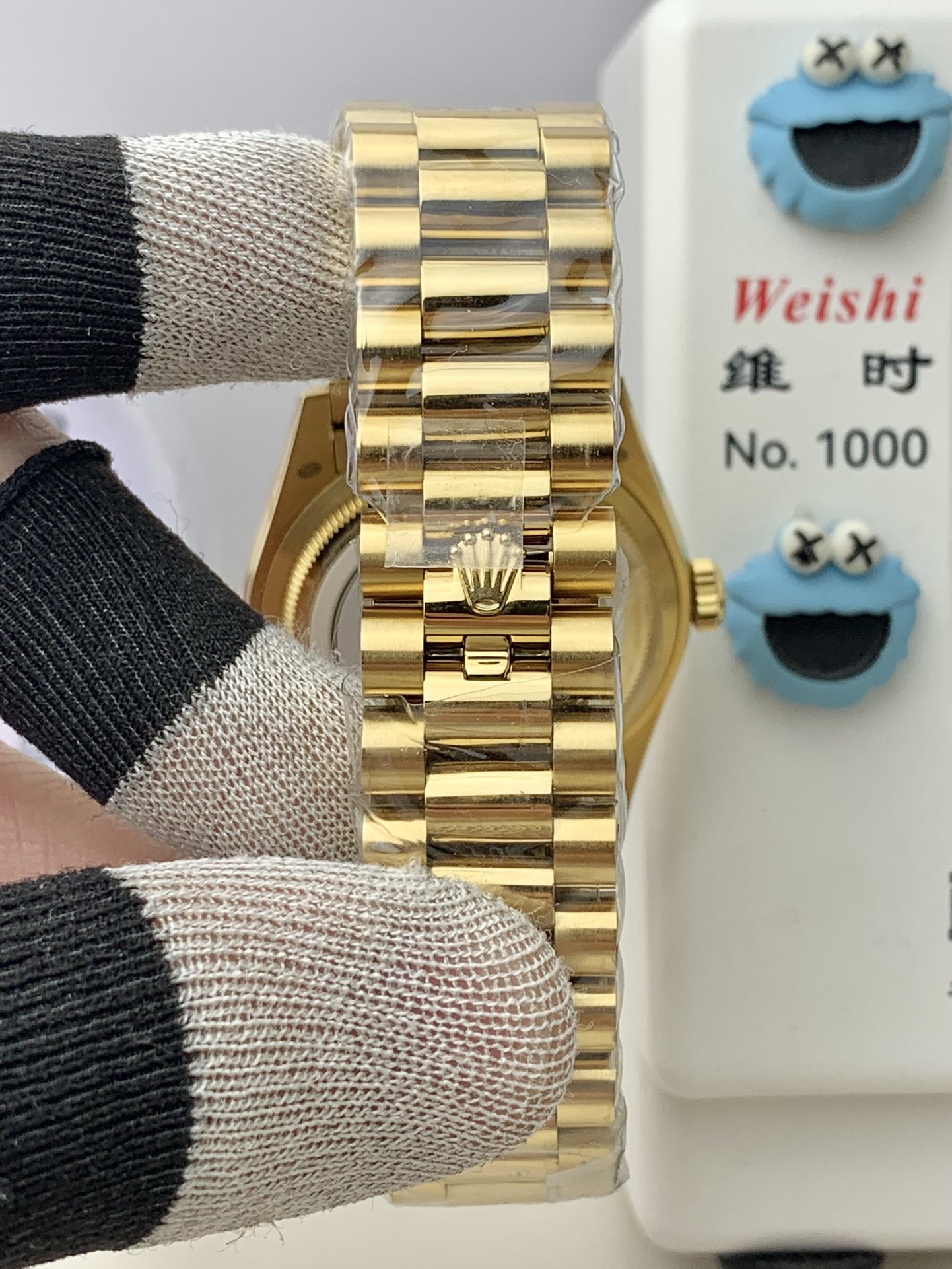 BRACELET: 18K Yellow Gold Plated On Solid 904L Stainless Steel President Bracelet with Double SEL(Cu-W Metal Increase Watch Weight )