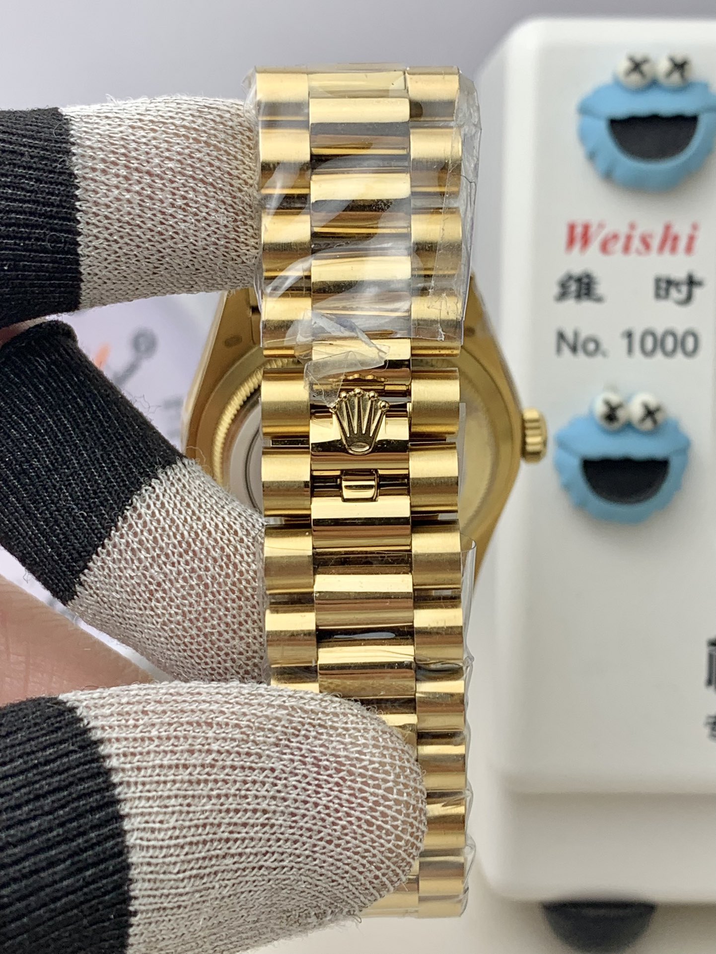 BRACELET: 18K Yellow Gold Plated On Solid 904L Stainless Steel President Bracelet with Double SEL(Cu-W Metal Increase Watch Weight )
