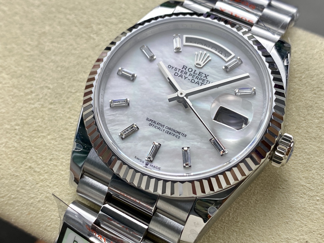 DIAL COLOR: Mother-Of-Pearl Dial Baguette Diamonds Markers