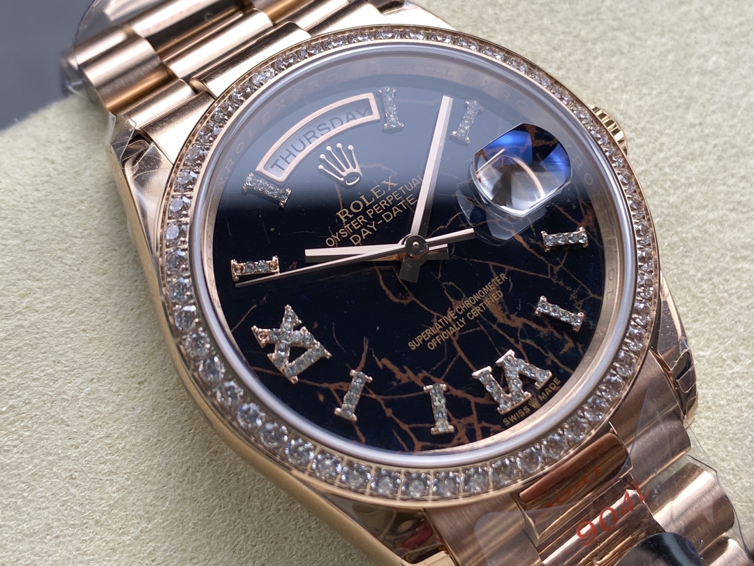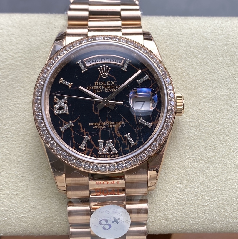Rolex-DayDate 128345 36mm President Diamonds Rose Gold/Rose Gold Eisenkiesel Dial Diamonds Roman Markers 8+F VR3255 Automatic