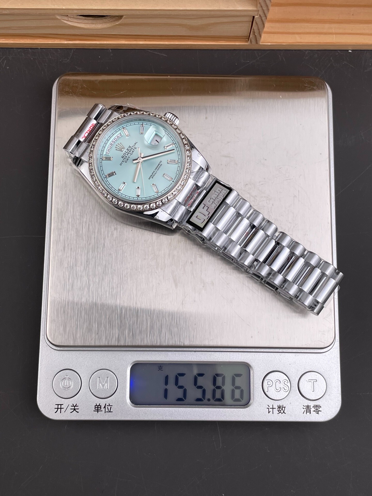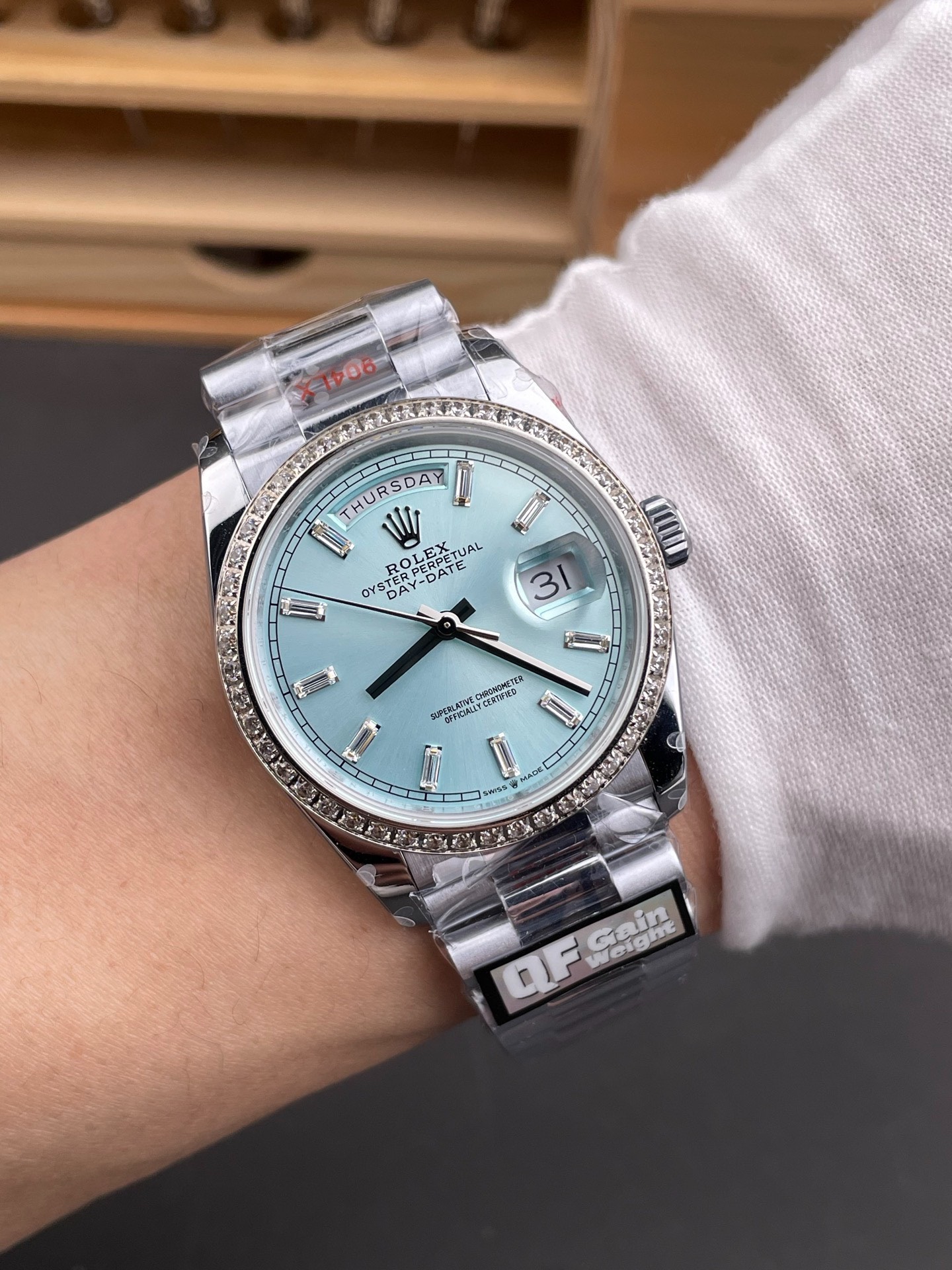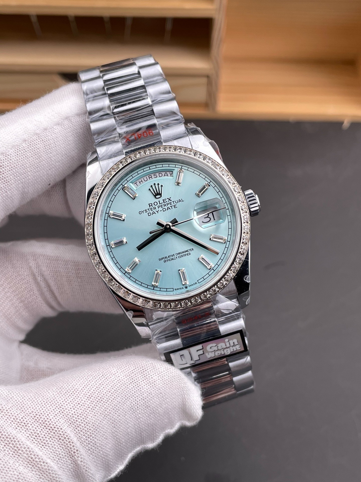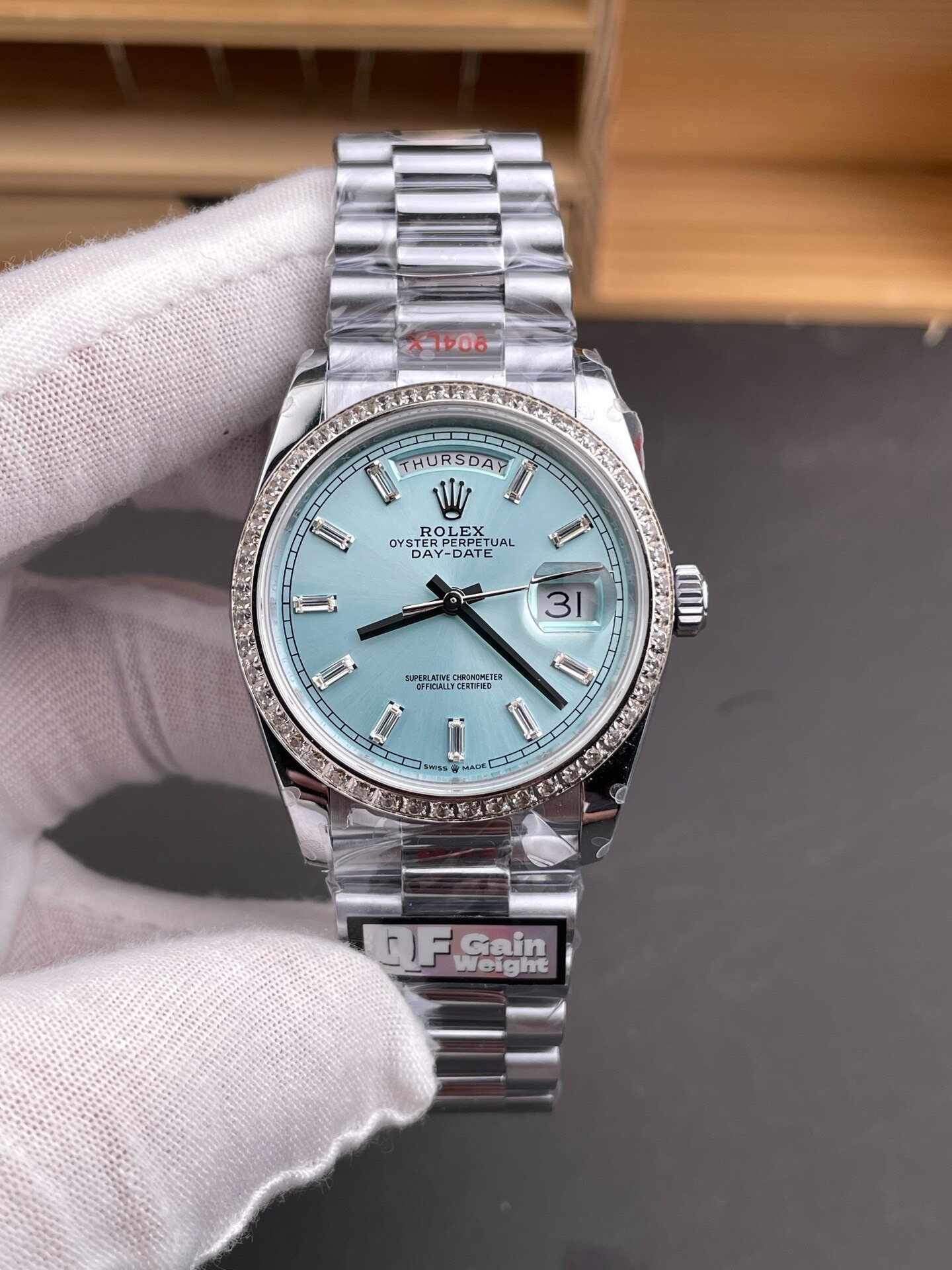 DIAL COLOR: Ice Blue Dial Baguette Diamonds Markerss