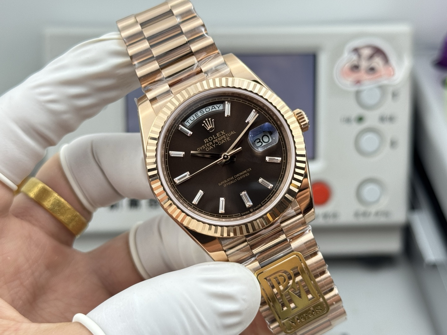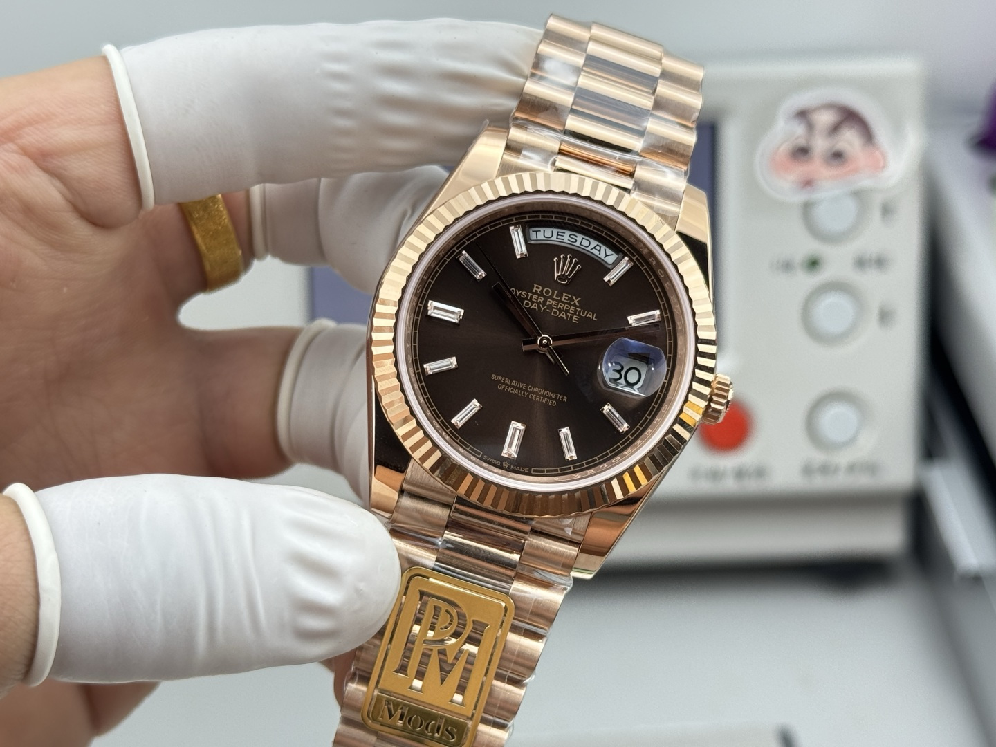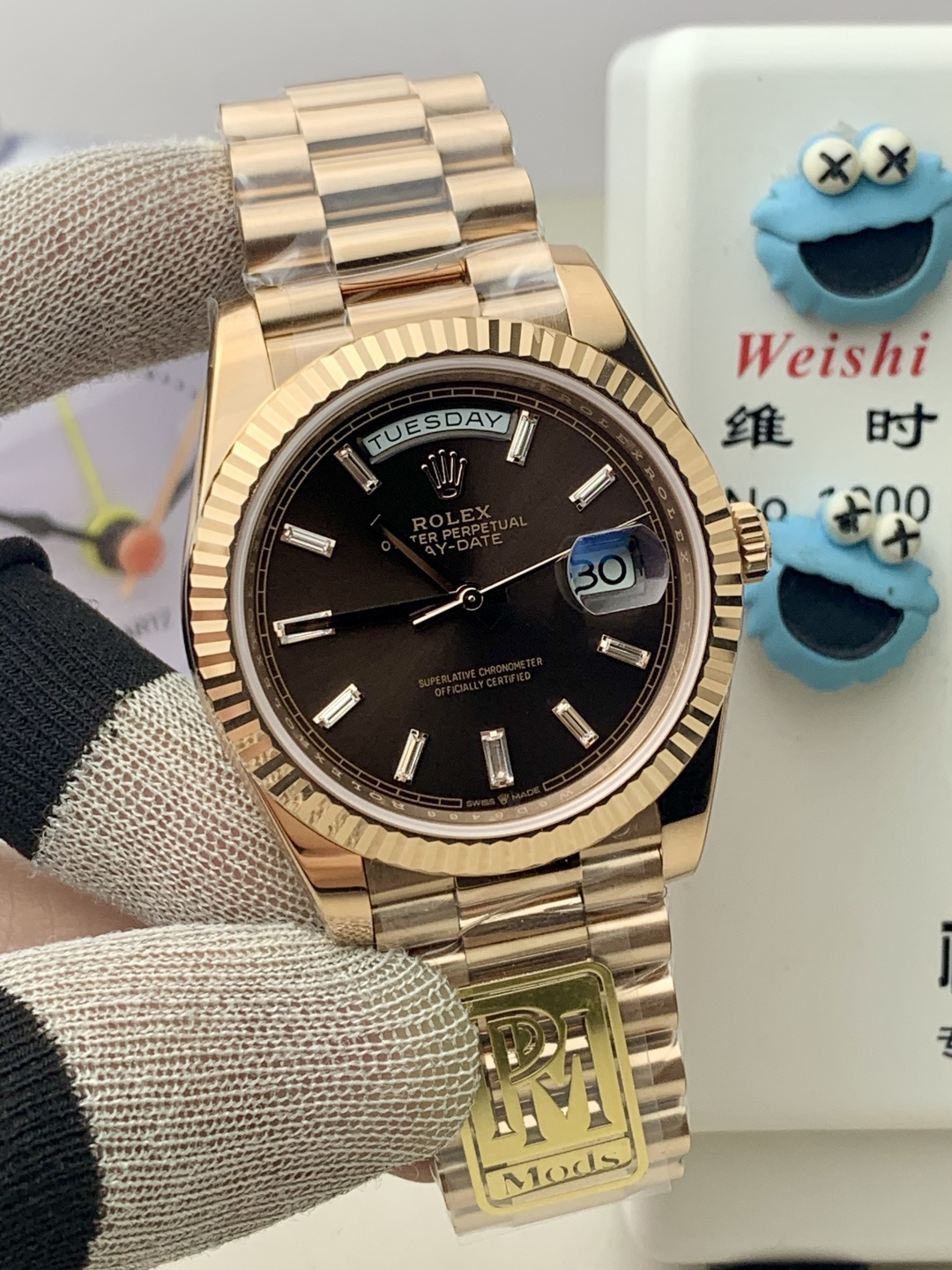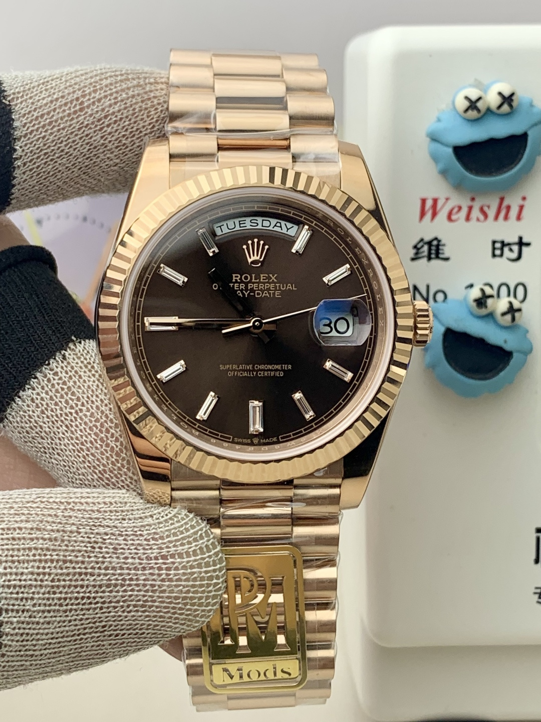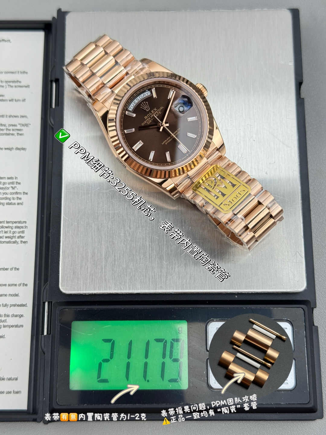 The PPM factory has launched this disruptive version of the Day-Date 40mm watch, implementing an ultimate weight-balancing solution that achieves a weight experience extremely close to the original without altering any external dimensions.