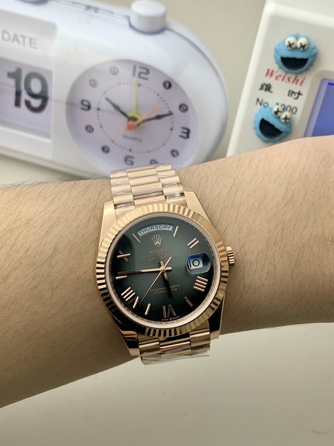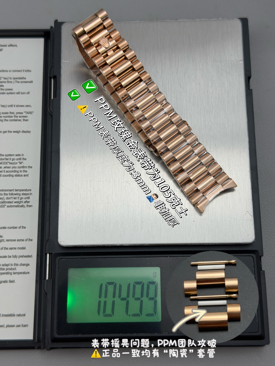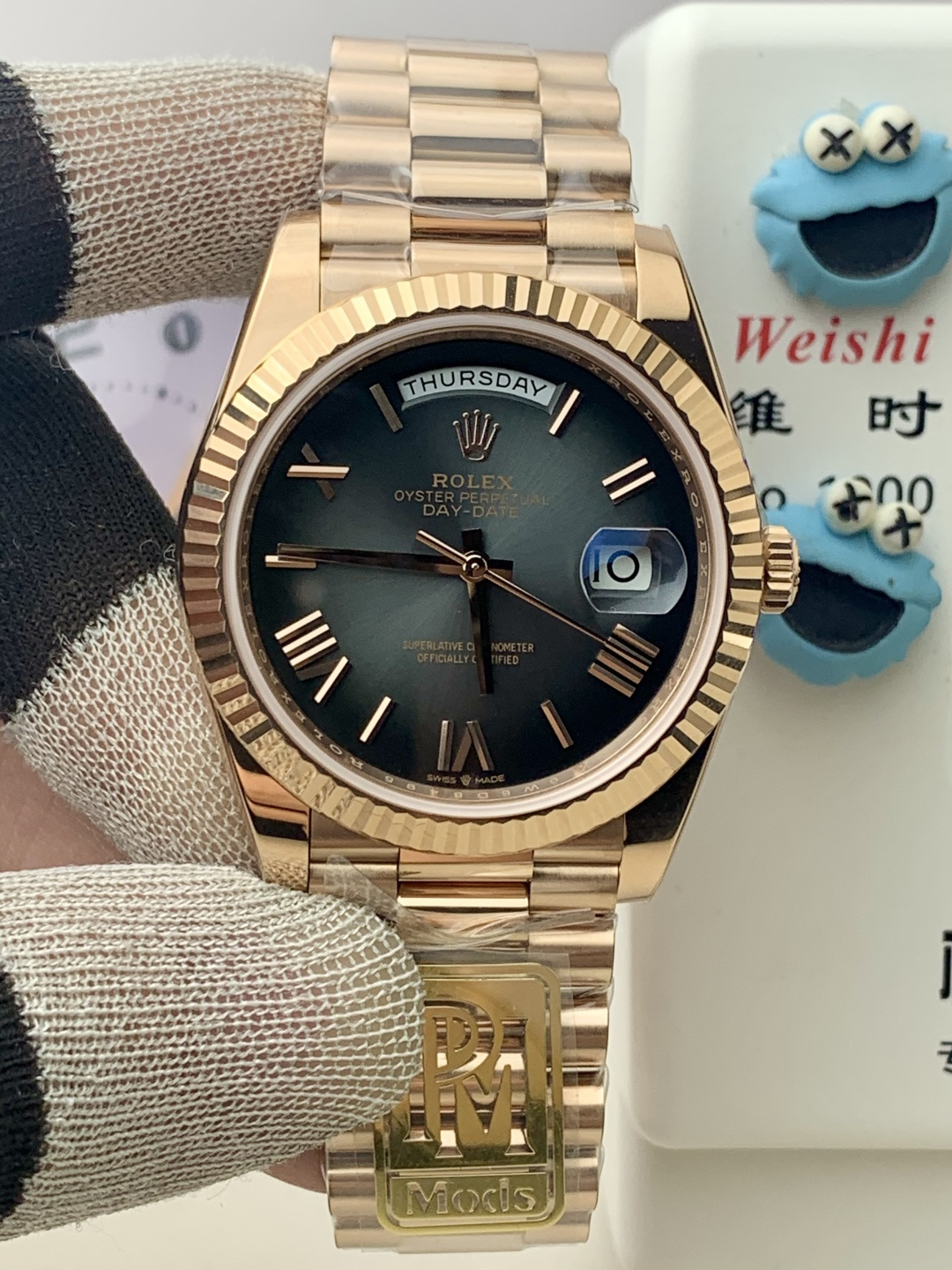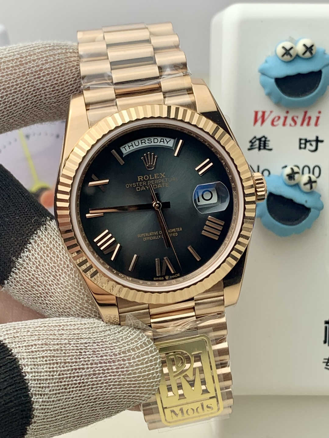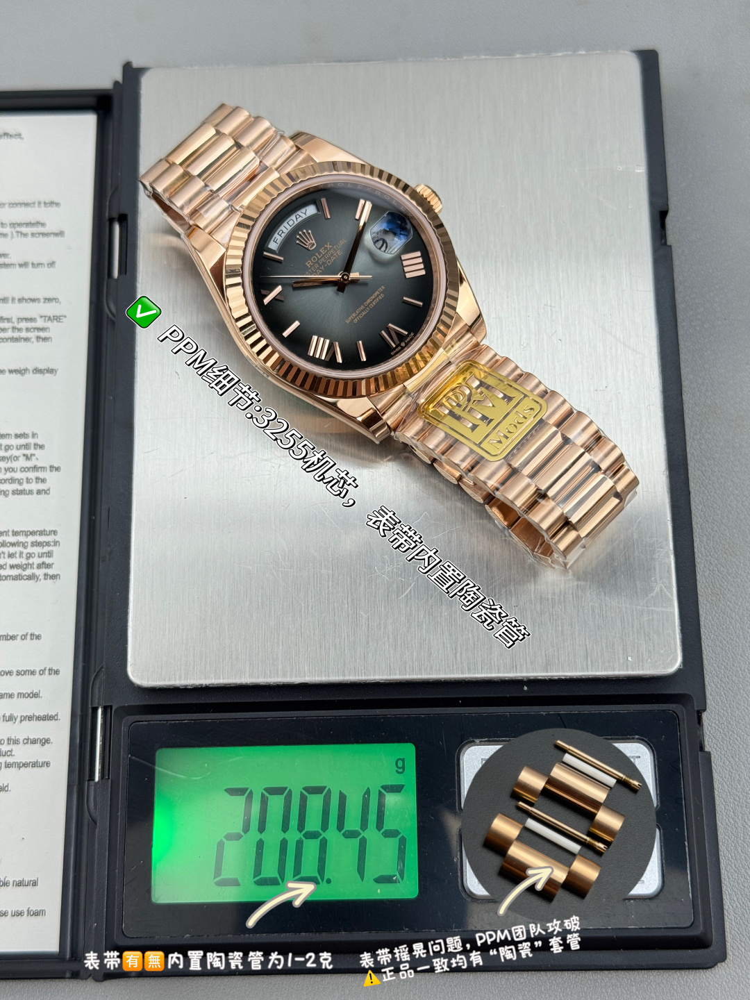 The PPM factory has launched this disruptive version of the Day-Date 40mm watch, implementing an ultimate weight-balancing solution that achieves a weight experience extremely close to the original without altering any external dimensions.