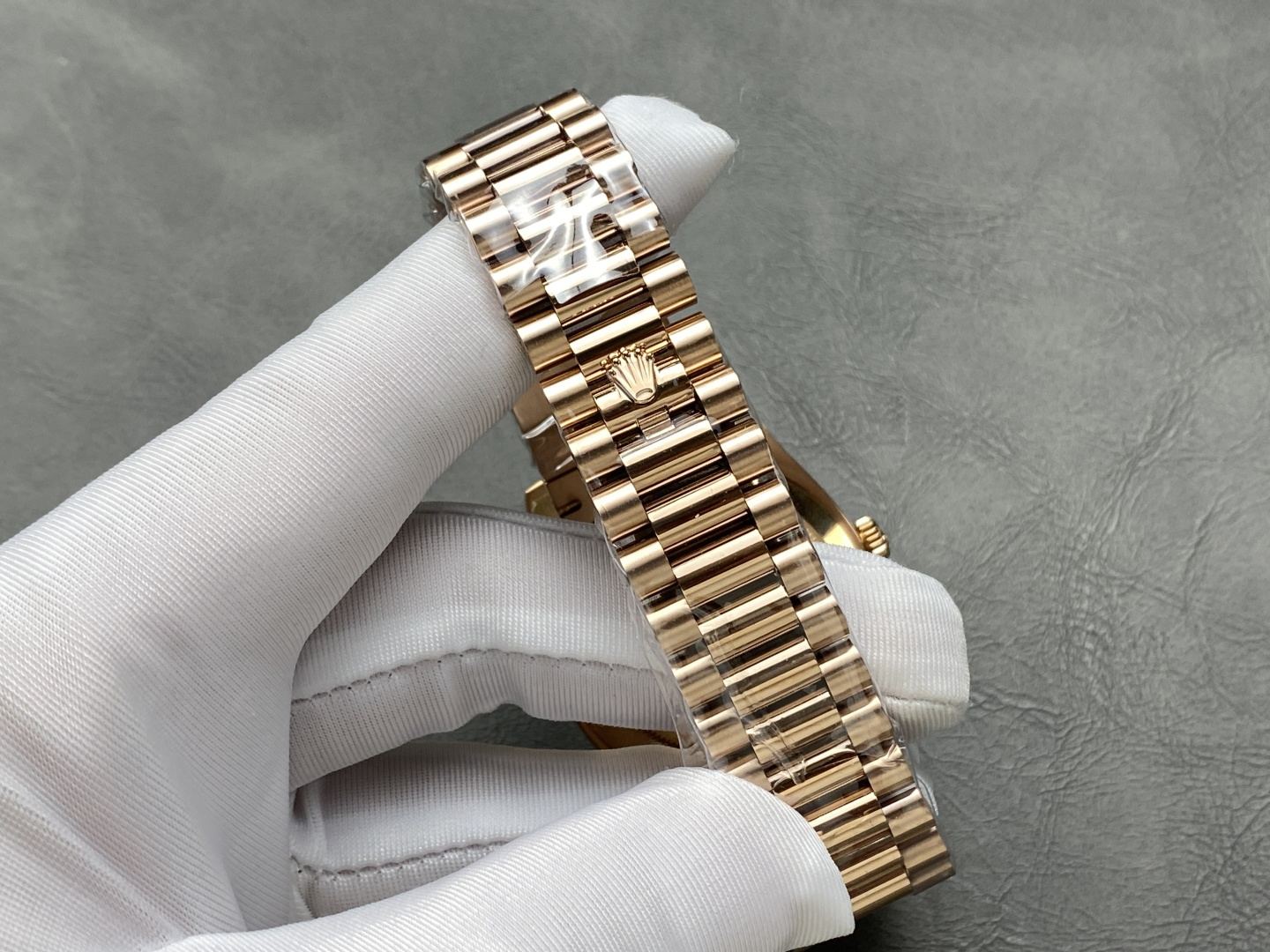 BRACELET: 18K Rose Gold Plated On Solid 904L Stainless Steel President Bracelet with Crown Clasp