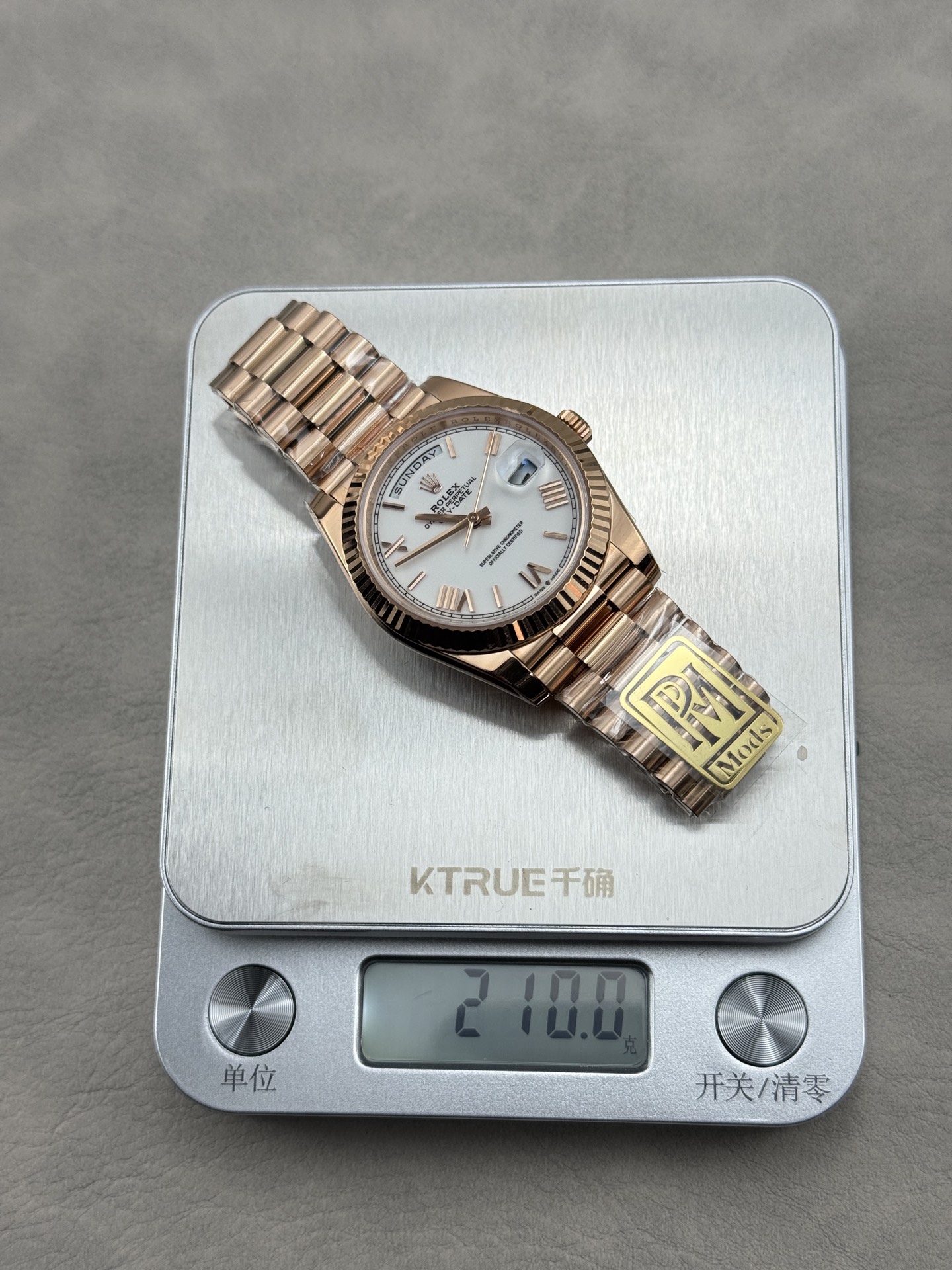 The PPM factory has launched this disruptive version of the Day-Date 40mm watch, implementing an ultimate weight-balancing solution that achieves a weight experience extremely close to the original without altering any external dimensions.