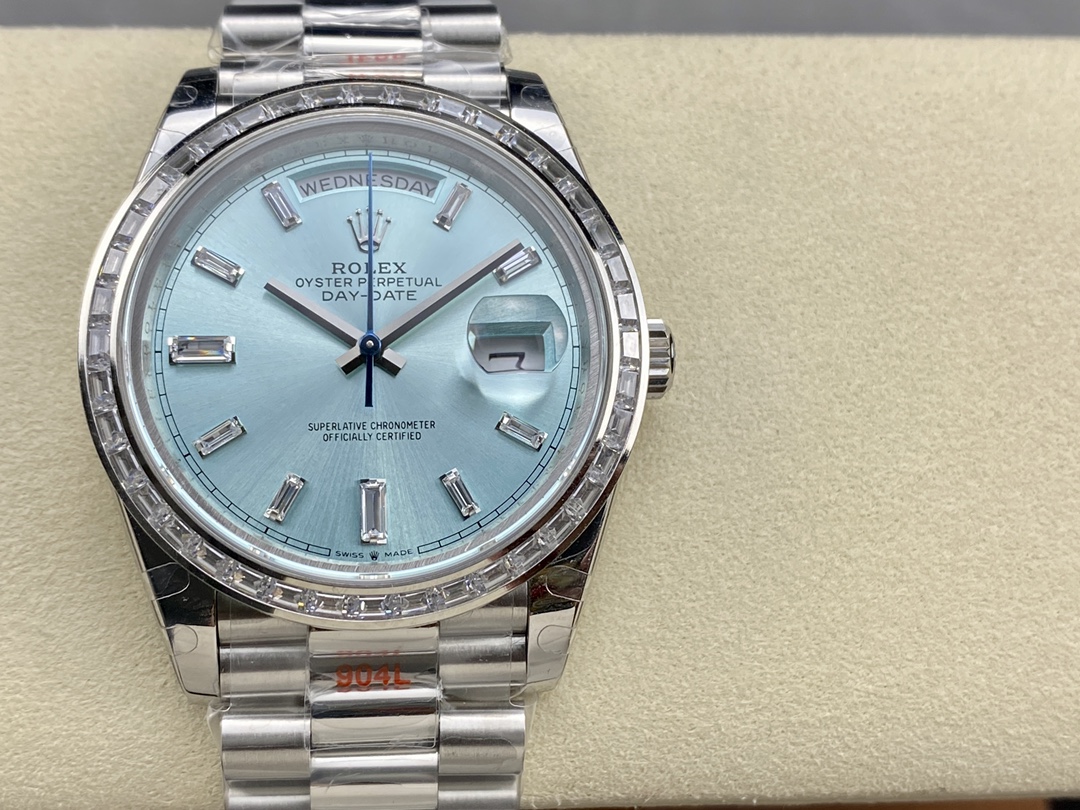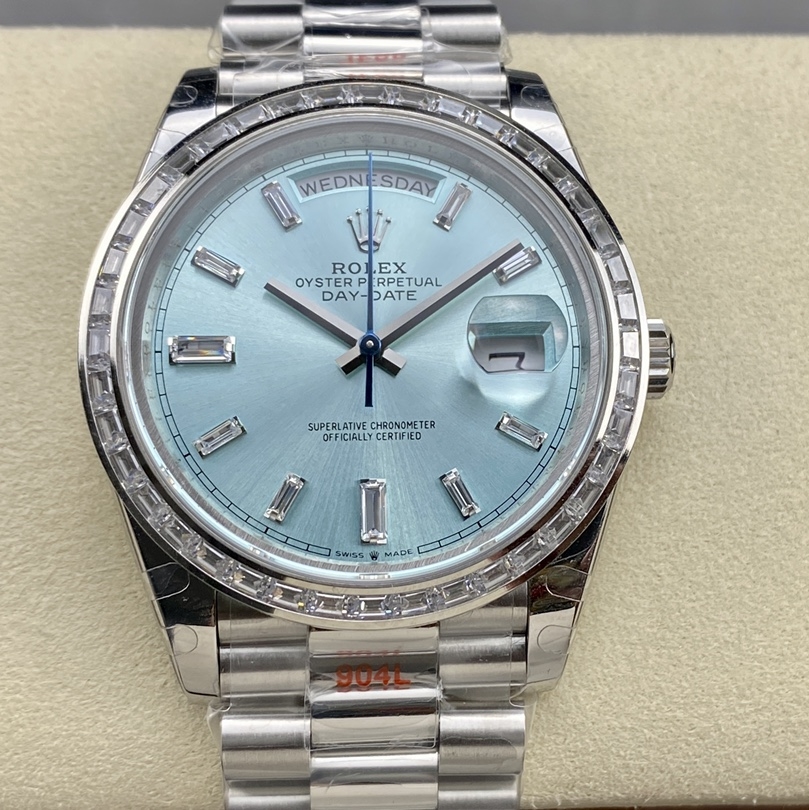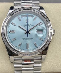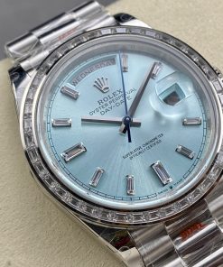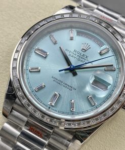 Rolex-DayDate 228236 40mm President Diamonds Stainless Steel/Steel Ice Blue Dial Baguette Markers GMF VR3255 Automatic