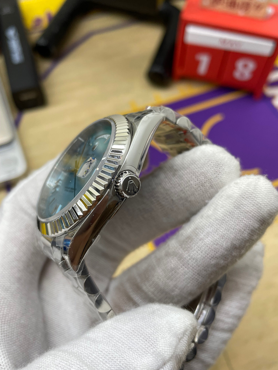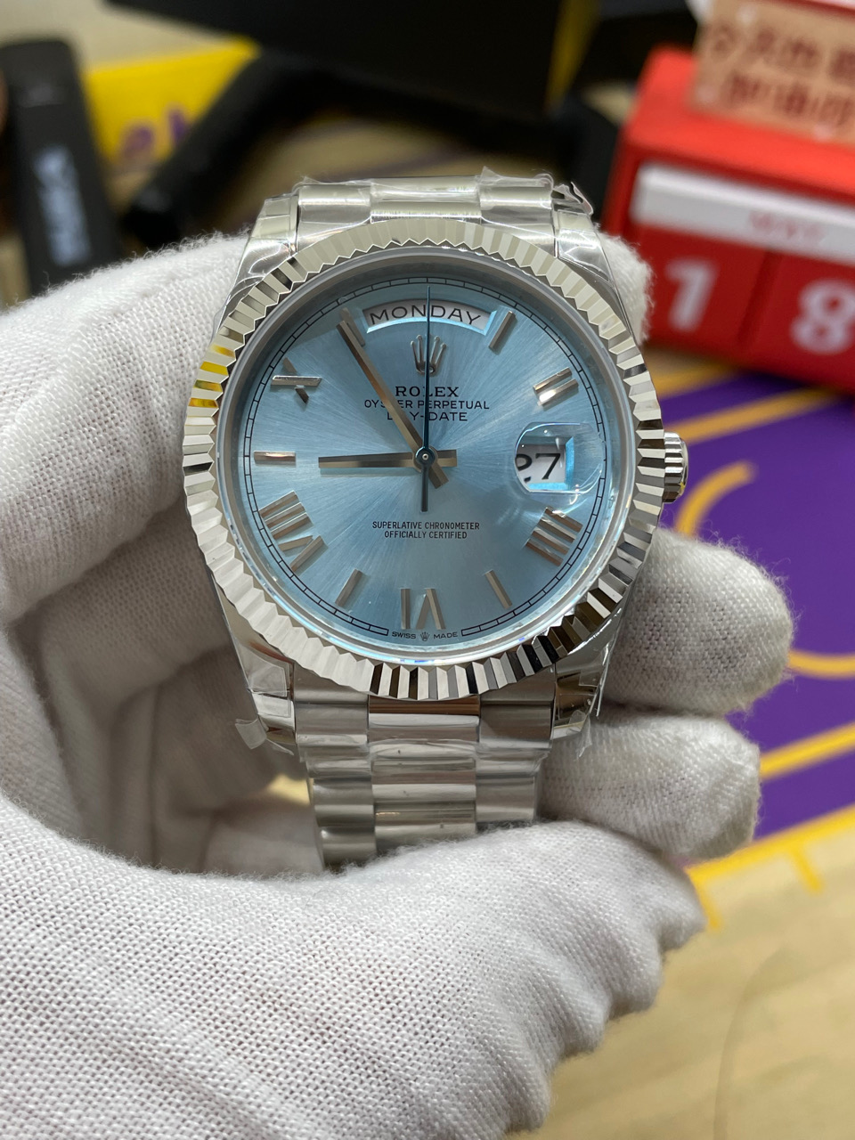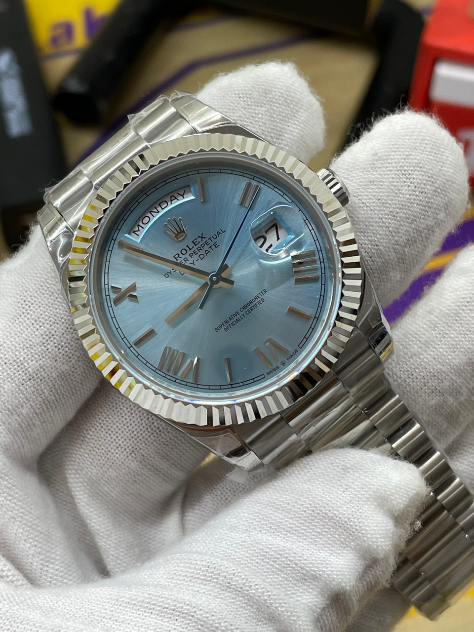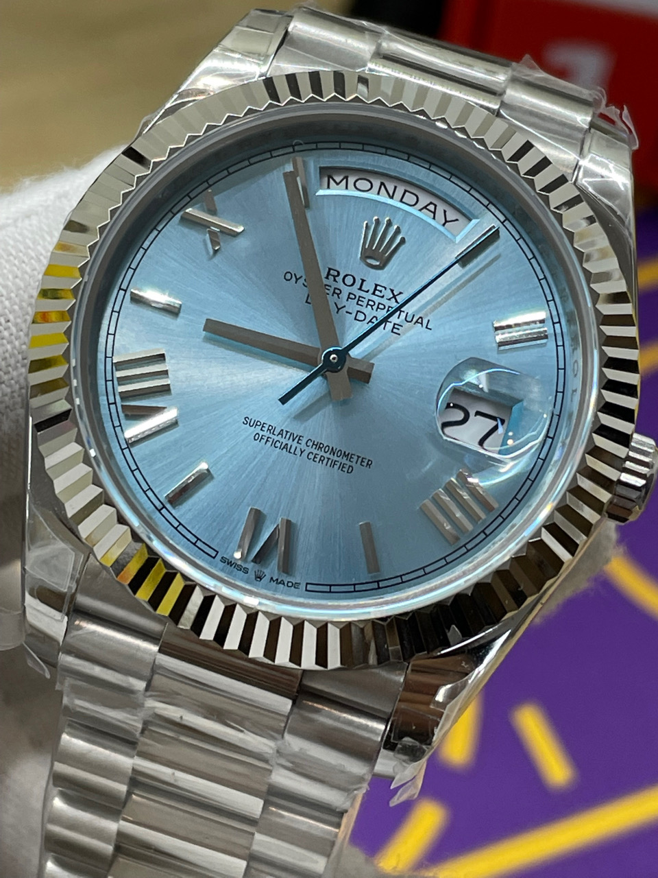 Rolex-DayDate 228236 40mm President Stainless Steel/Steel Ice Blue Dial Roman Markers TWF VR3255 Automatic