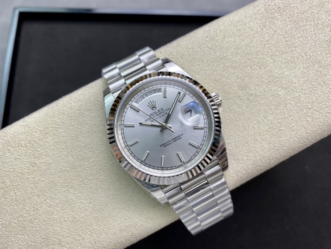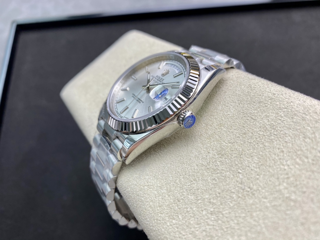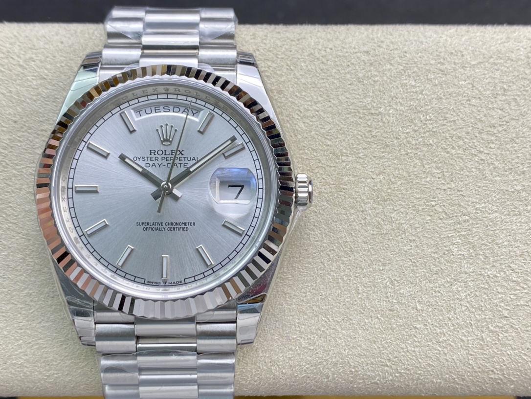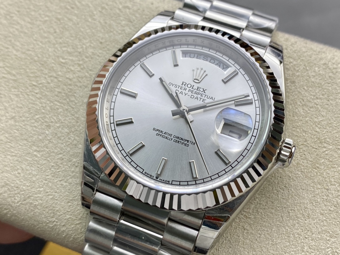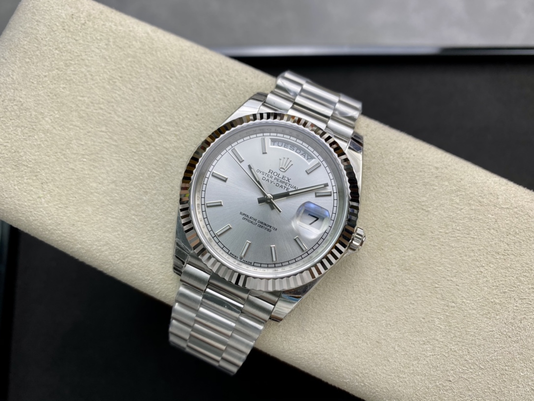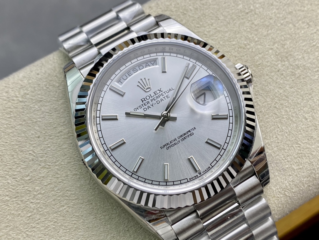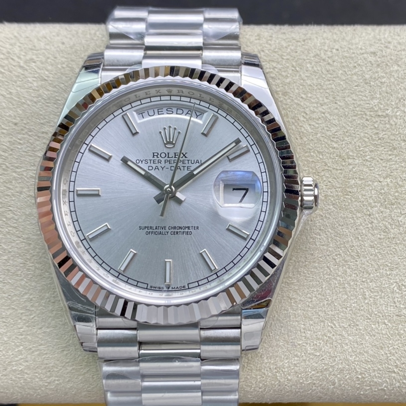 Rolex-DayDate 228236 40mm President Stainless Steel/Steel Silver Dial Stick Markers EWF VR3255 Automatic