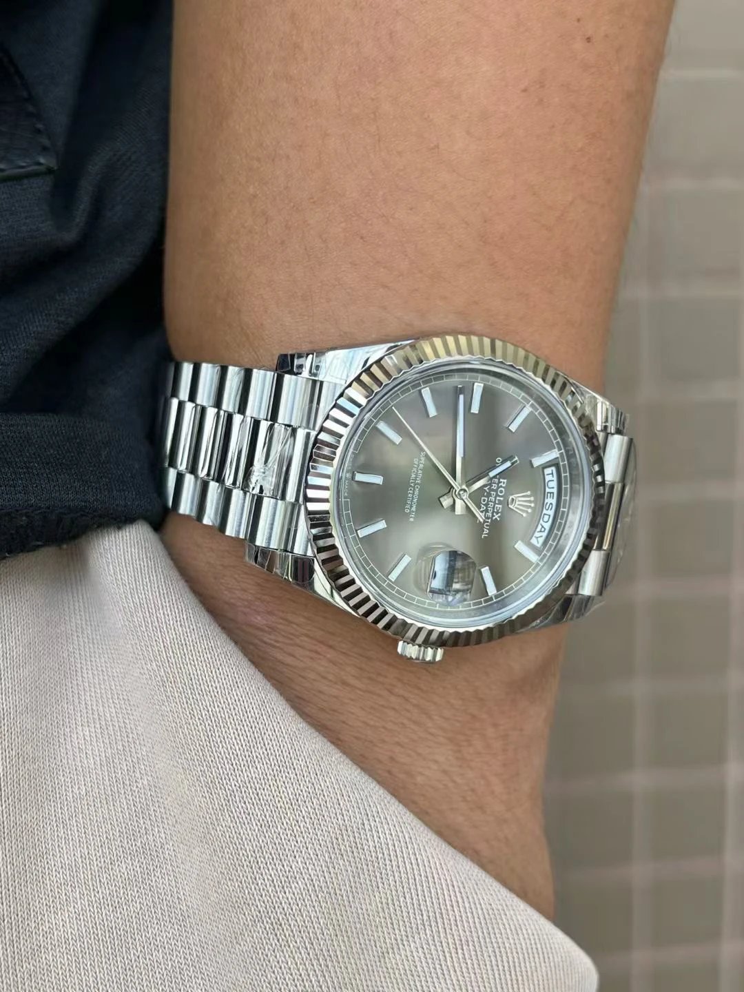 BRACELET: Solid 904L Stainless Steel President Bracelet with Deployant Clasp