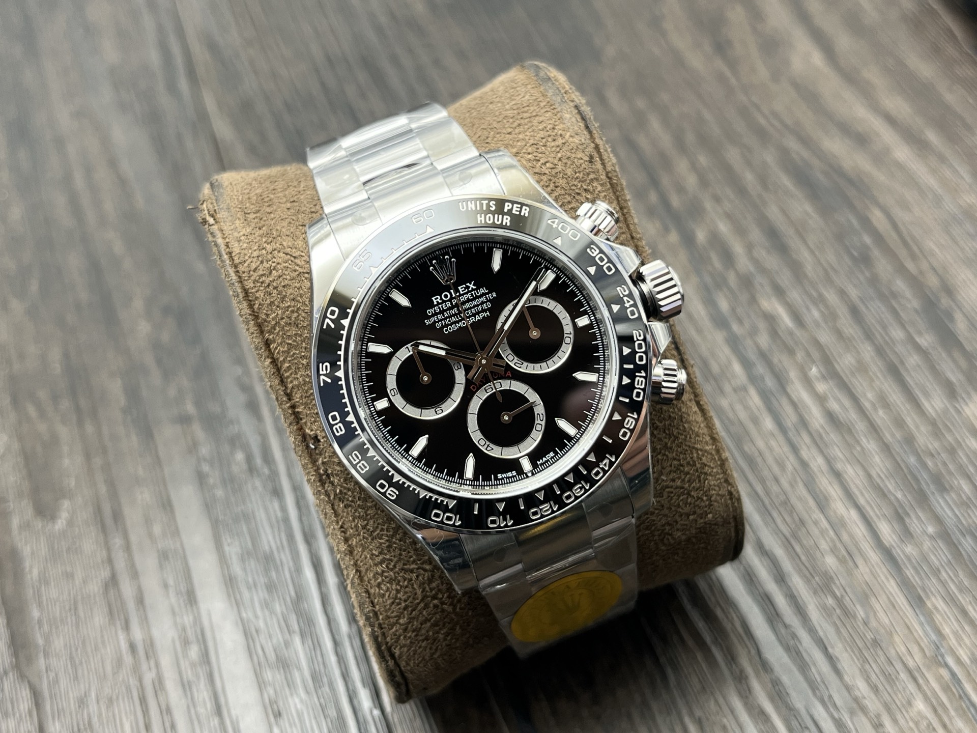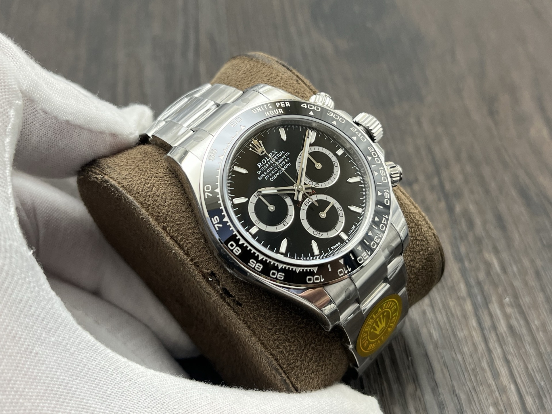 BEZEL:Black ceramic tachymeter bezel