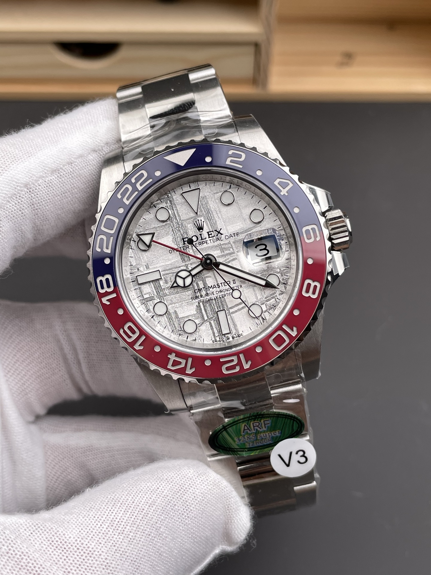DIAL COLOR:Meteorite Dial with Round Markers (Correct Hand Stack) – Superlume Applied