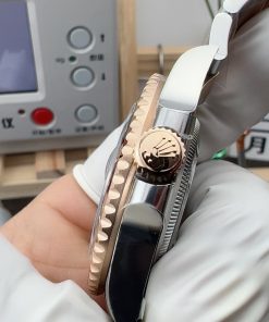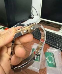 BRACELET:Two Tone 18K Rose Gold Oyster Bracelet with Updated Rolesor Clasp