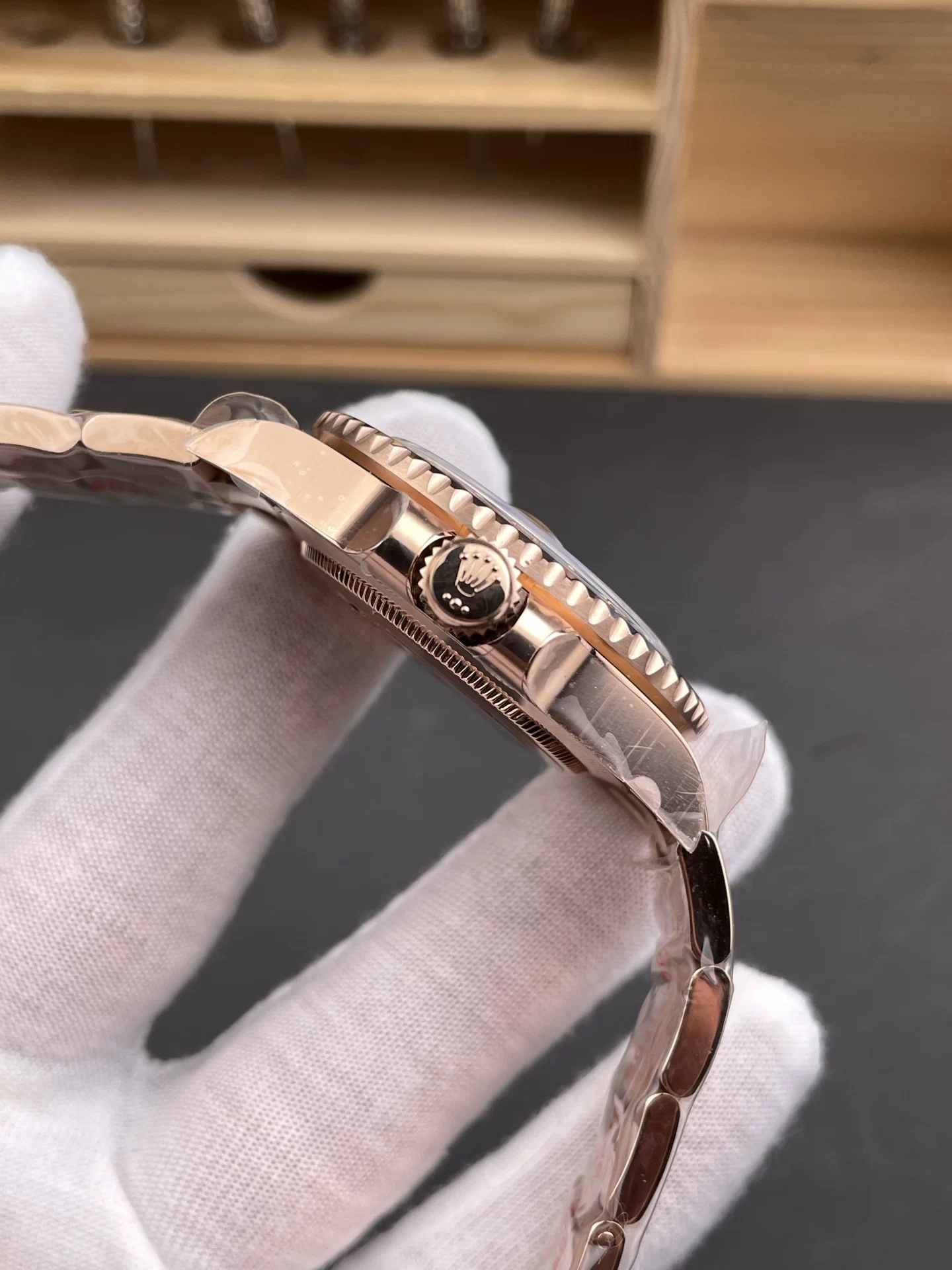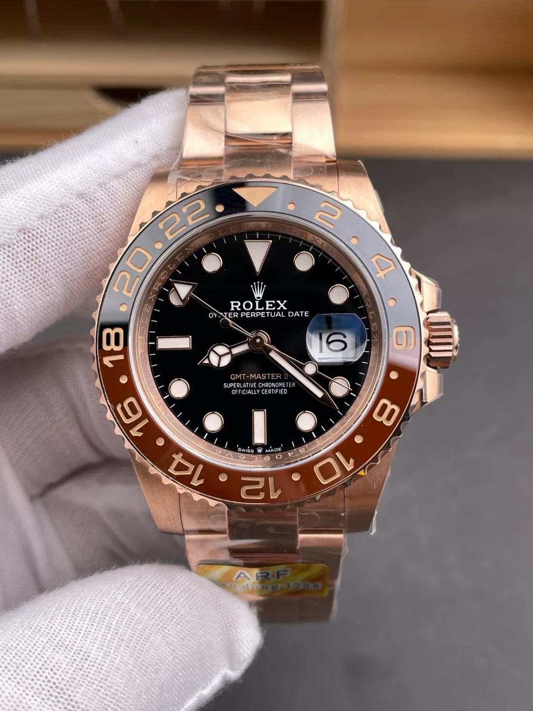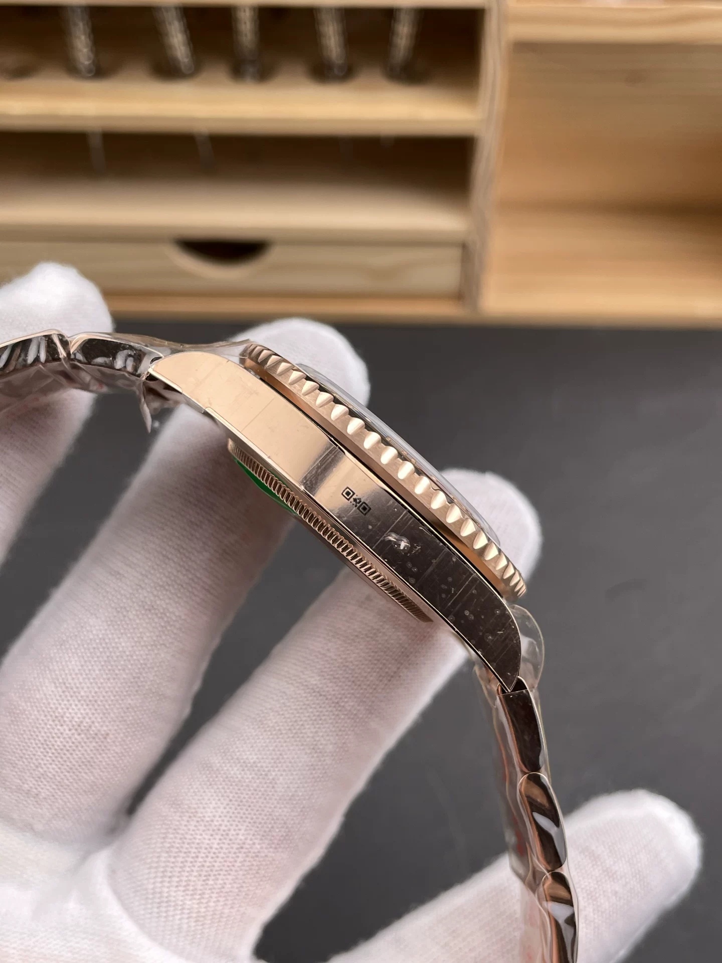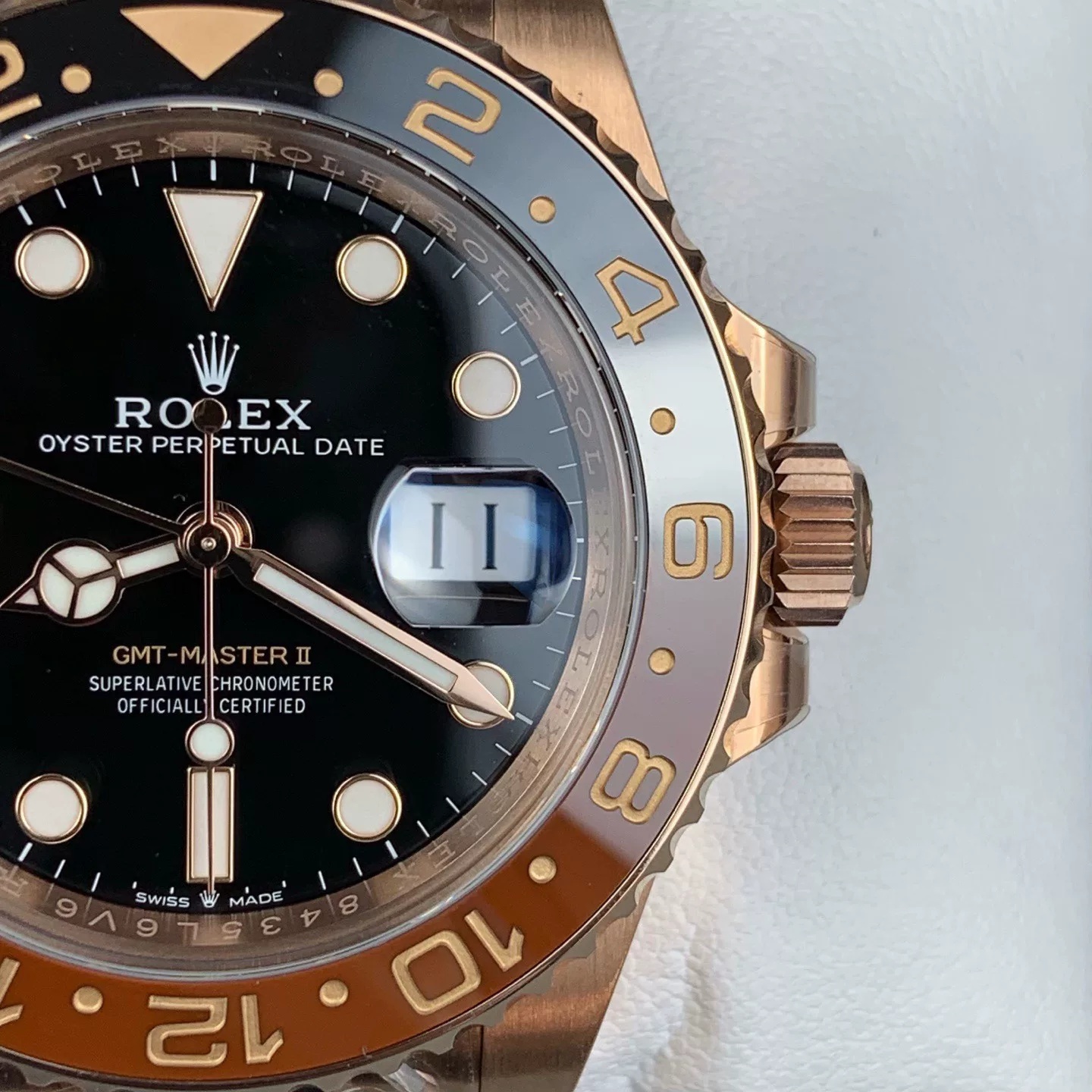 CASE MATERIAL: 18K Rose Gold Plated Solid Stainless Steel 904L (Rehaut at 6:00 has random serial like Genuine)