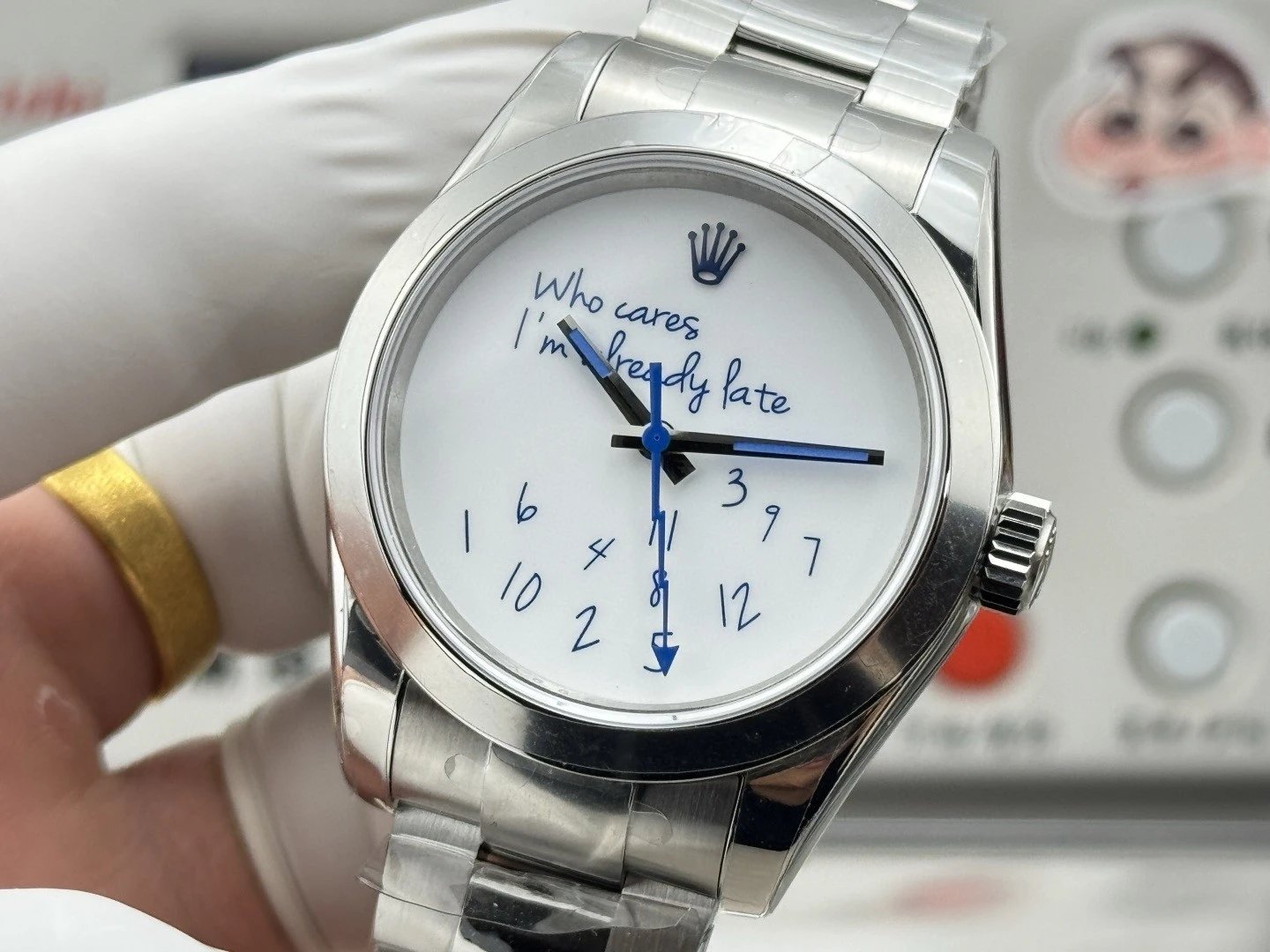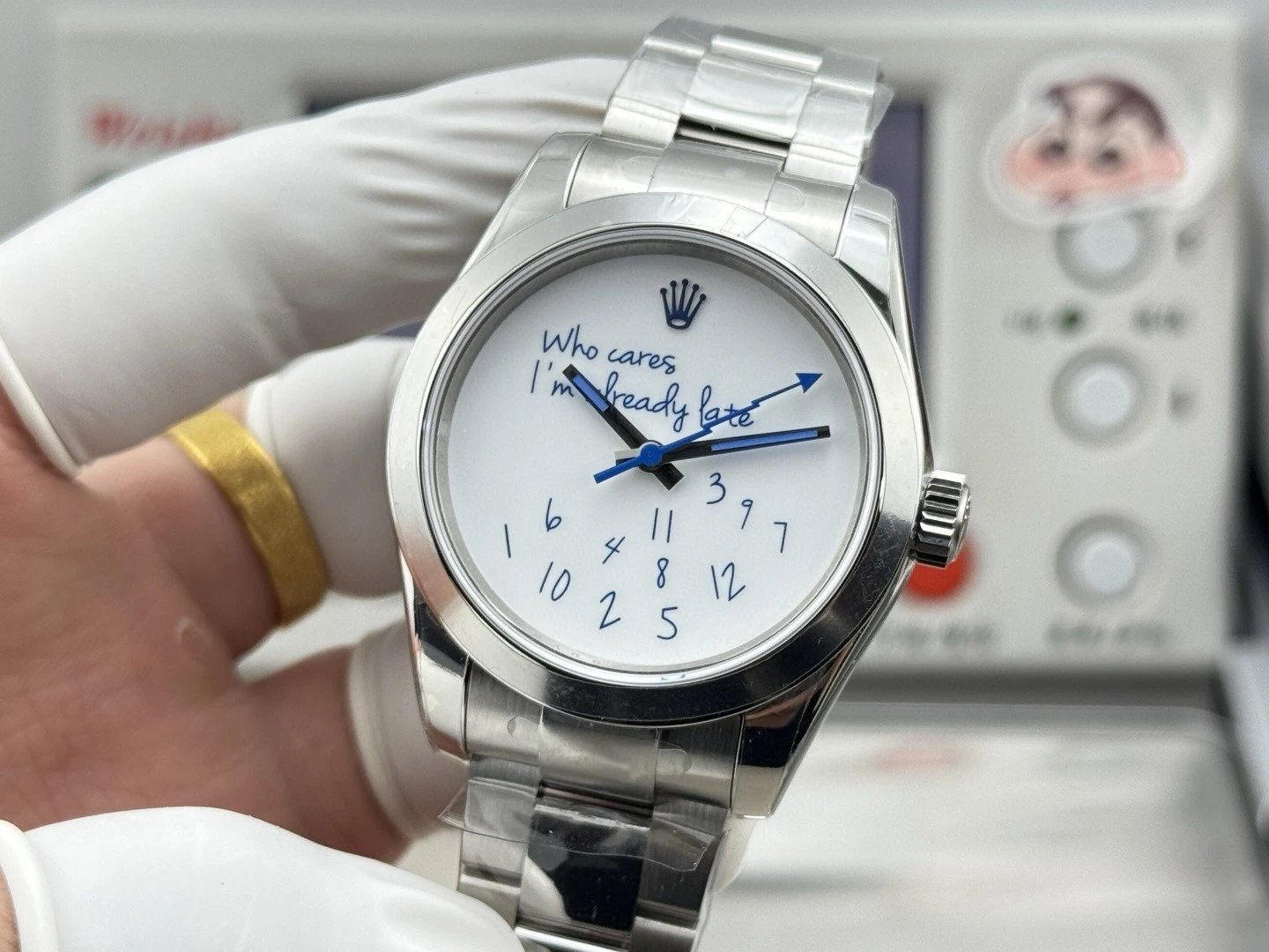 Rolex-Milgauss 116400GV 40mm Mad “Who Cares I’m already late” Stainless Steel/Steel White Dial VSF VR3131 Automatic