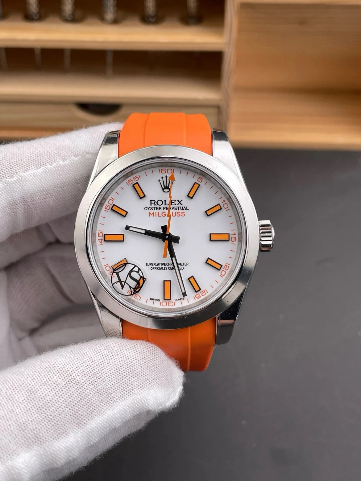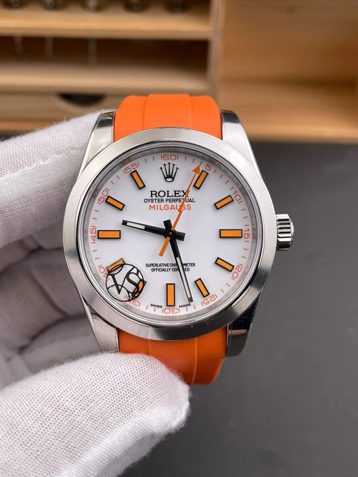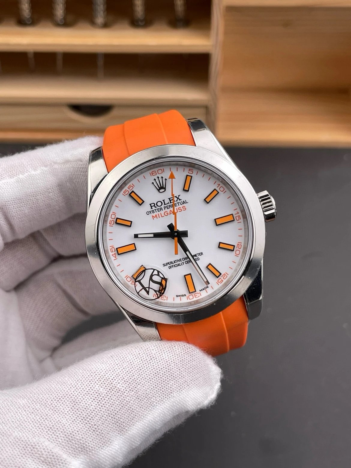 DIAL COLOR: White Dial Stick Marekrs(Blue Superlume Applied on Hands and Markers)