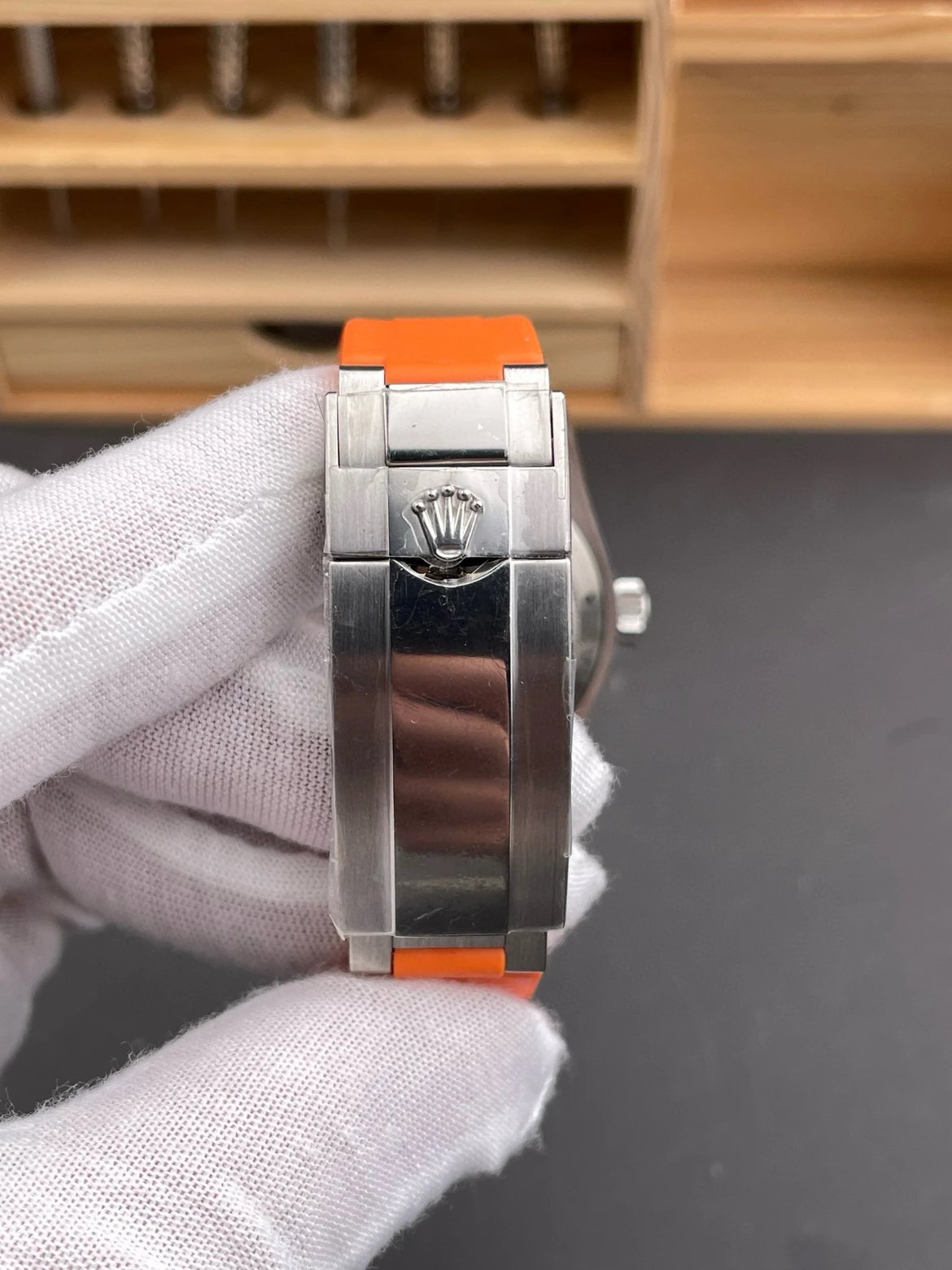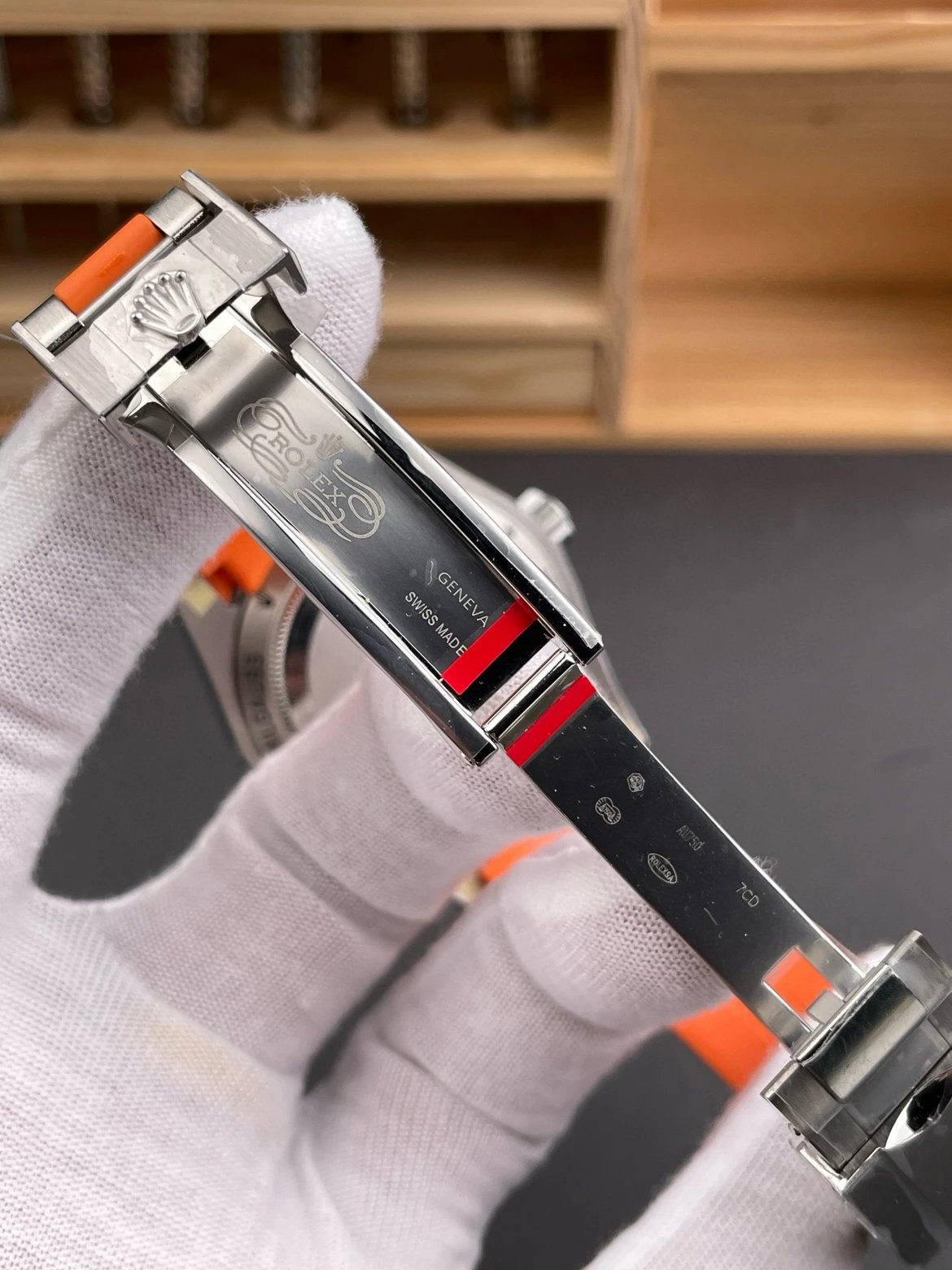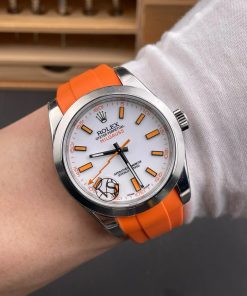 BRACELET: Orange Rubber Strap with Deployant Buckle