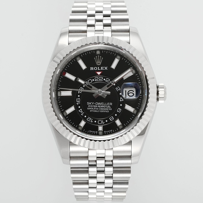 Rolex-SkyDweller 326934 42mm Jubilee Stainless Steel/Steel Black Dial Stick Markers ZF V2 A2824 Automatic