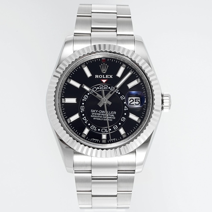 Rolex-SkyDweller 326934 42mm Oyster Stainless Steel/Steel Black Dial Stick Markers ZF V2 A2824 Automatic