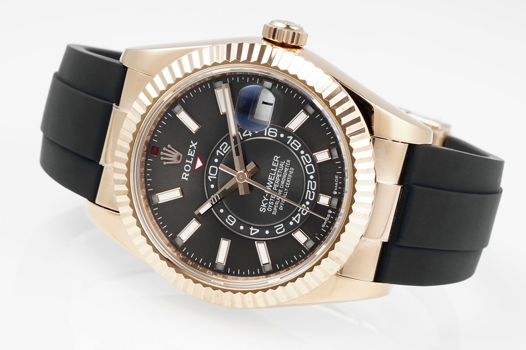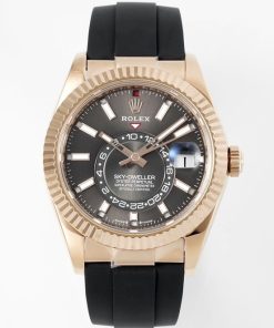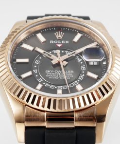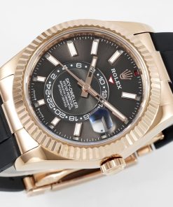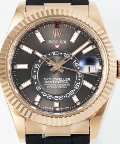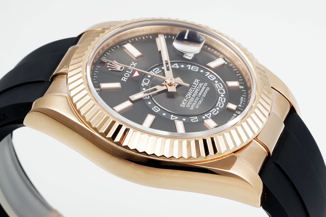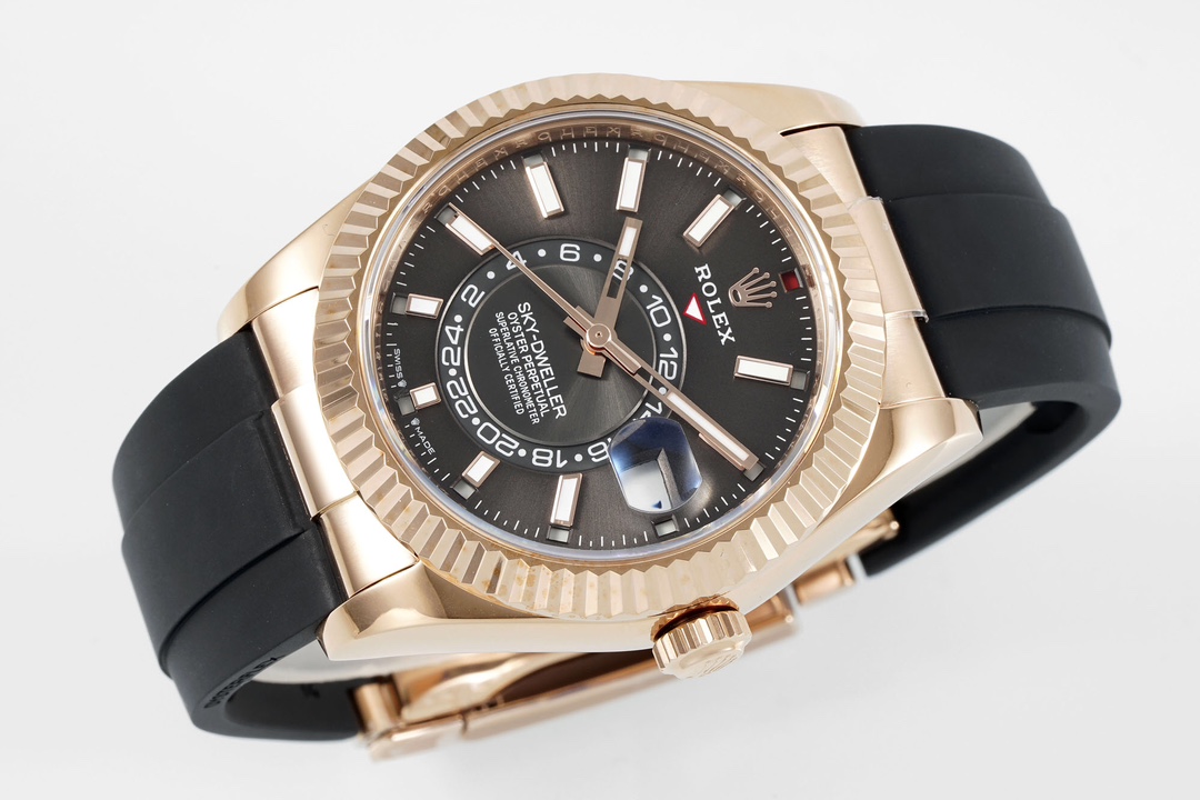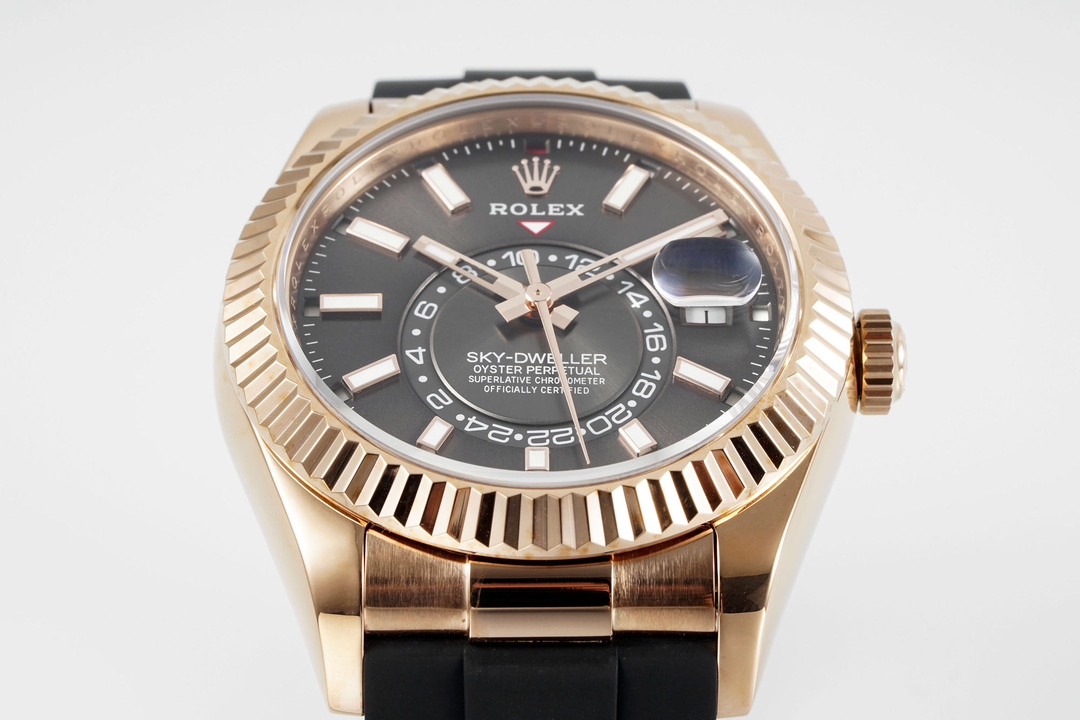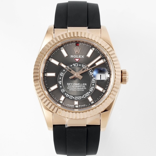 Rolex-SkyDweller 336235 42mm Rose Gold/Rubber Grey Dial Stick Markers ZF V2 A2824 Automatic(Tungsten Heavy Version)