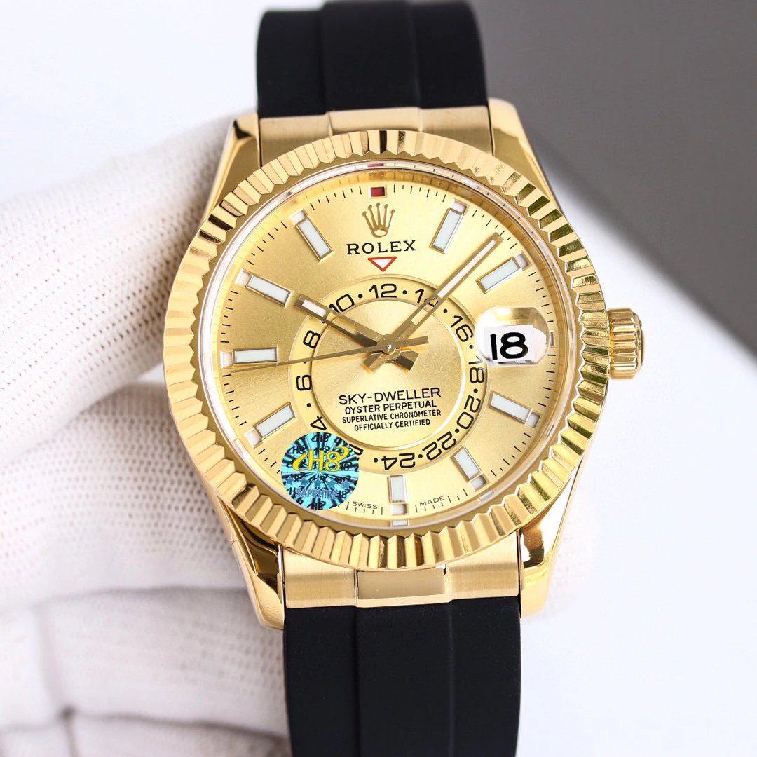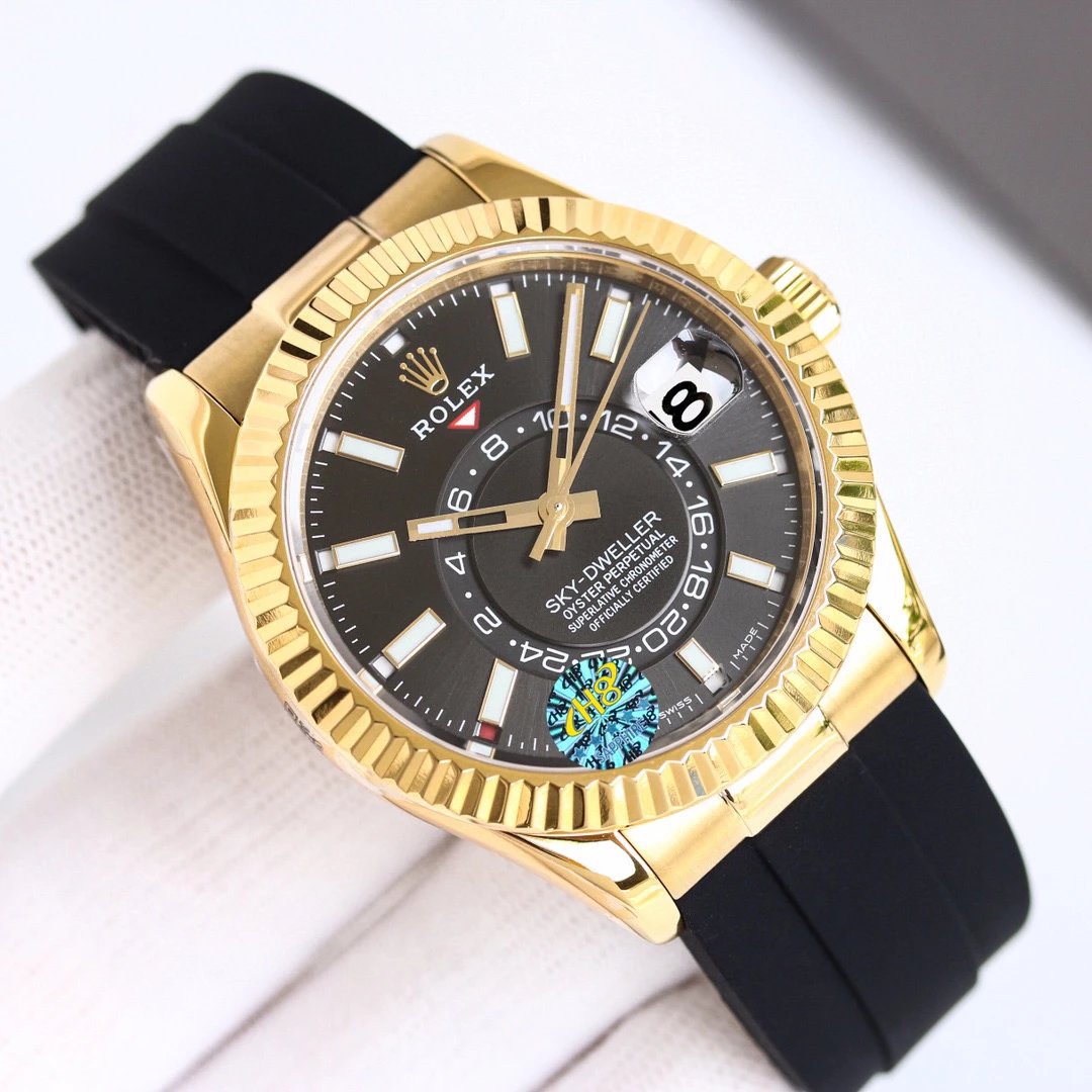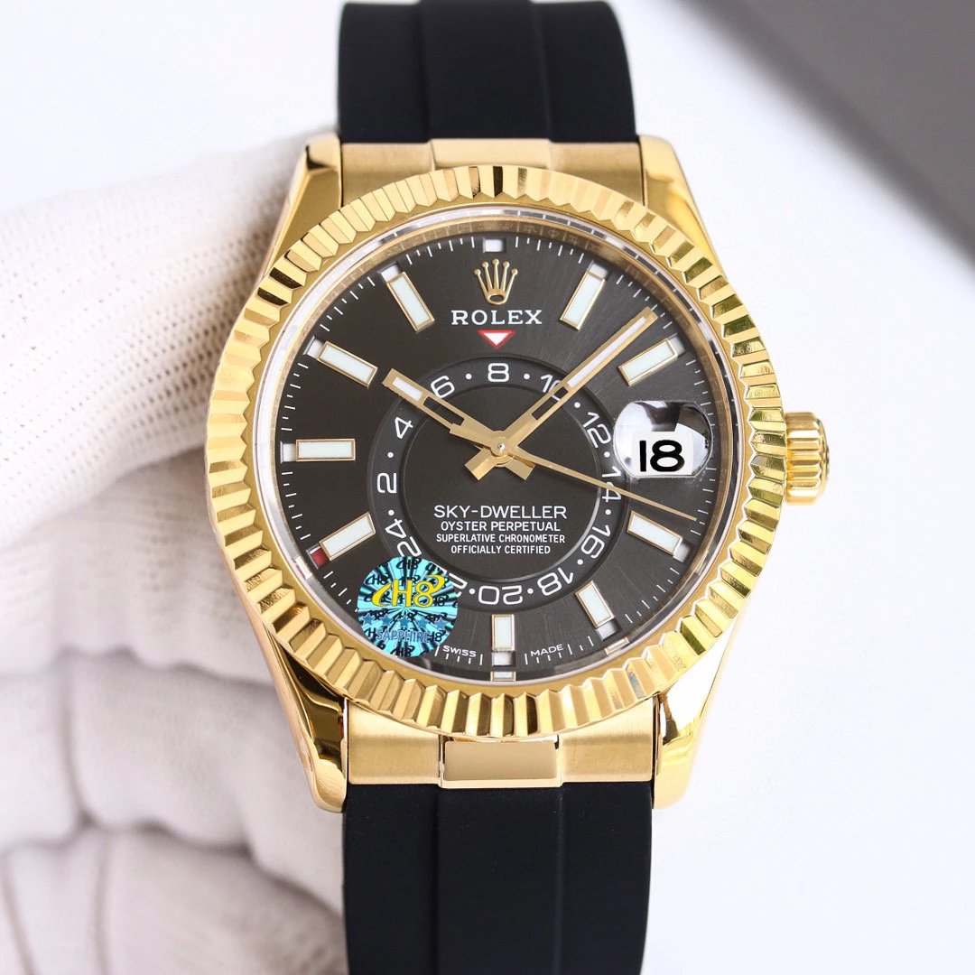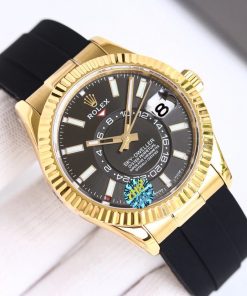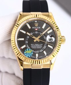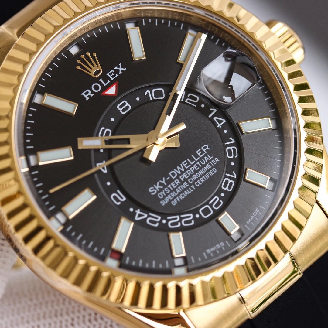 Rolex-SkyDweller 336238 42mm Yellow Gold/Rubber Black Dial Stick Markers H8F A9002 Automatic