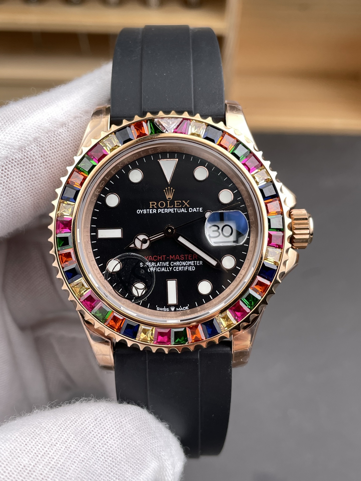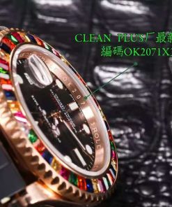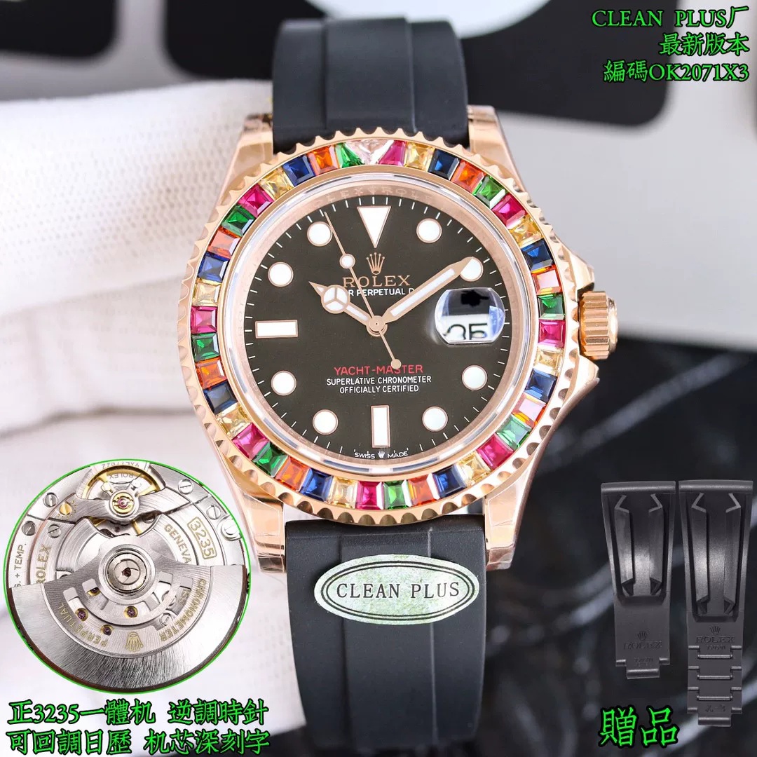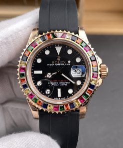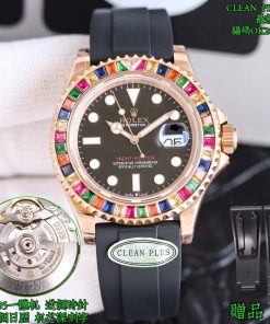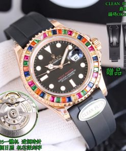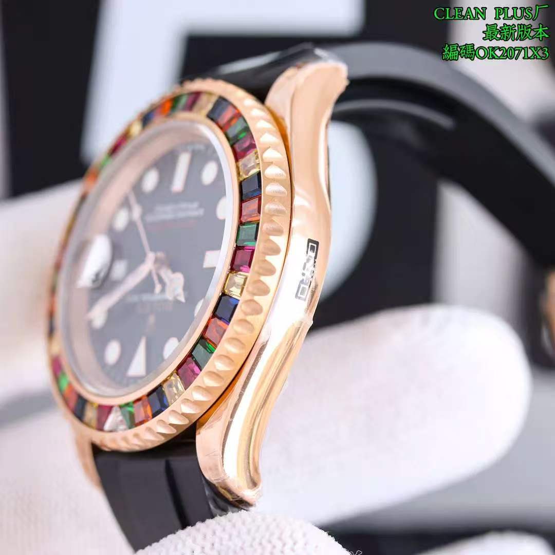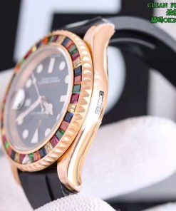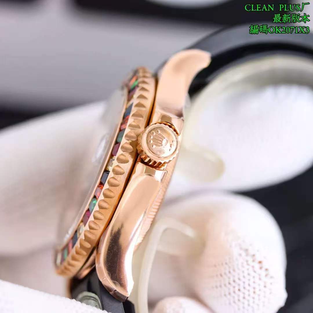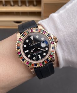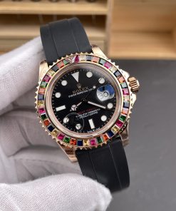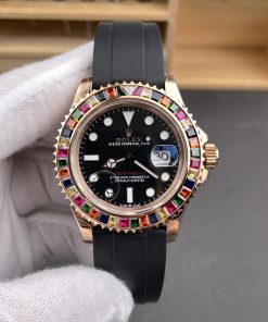 Rolex-Yacht-Master 116655 40mm Rainbow Diamonds Rose Gold/Rubber Black Dial Dot Markers VSF DD3235 Automatic
