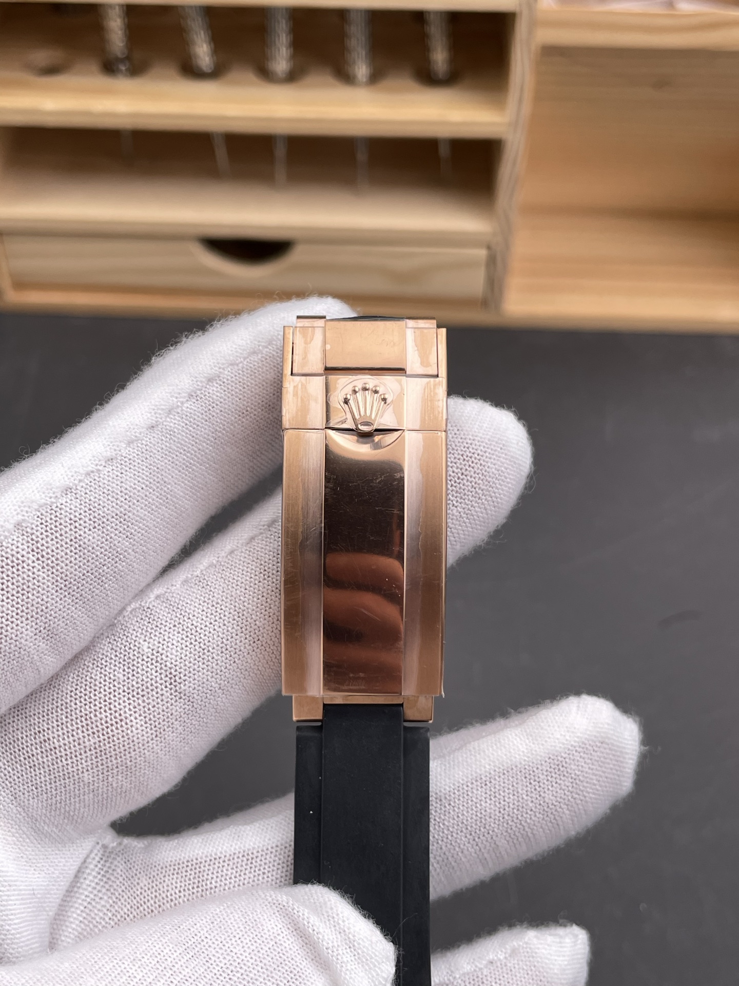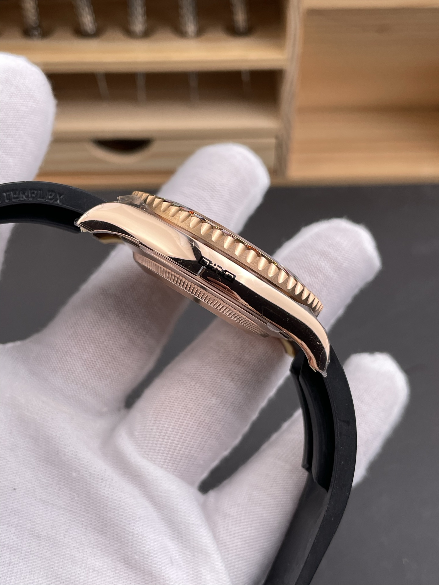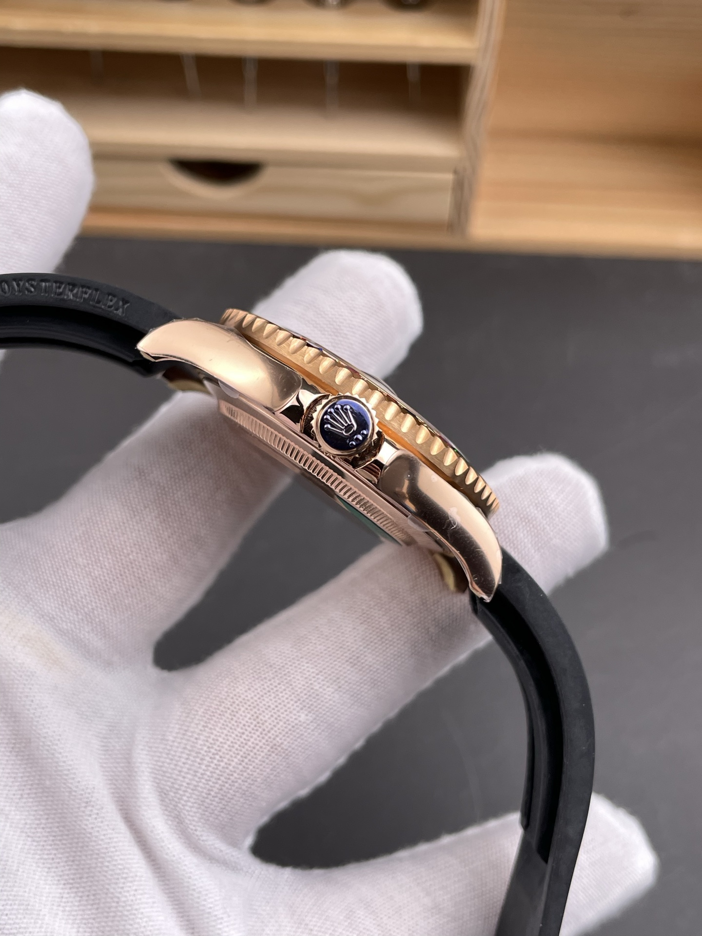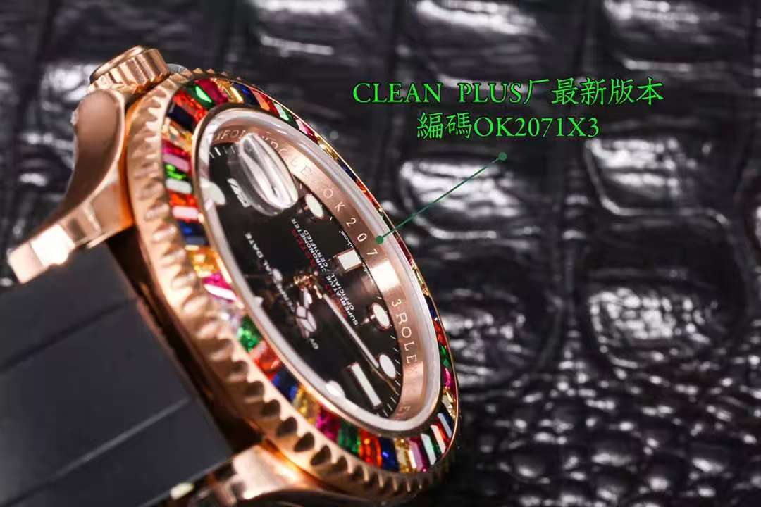 Rolex-Yacht-Master 116655 40mm Rainbow Diamonds Rose Gold/Rubber Black Dial Dot Markers VSF DD3235 Automatic