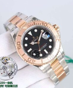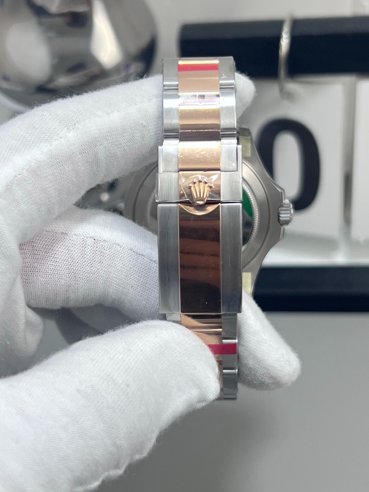 BRACELET: Two Tone 18K Rose Gold Plated Solid 904L Stainless Steel bracelet with Flip Lock Deployant Buckle(AR Made)